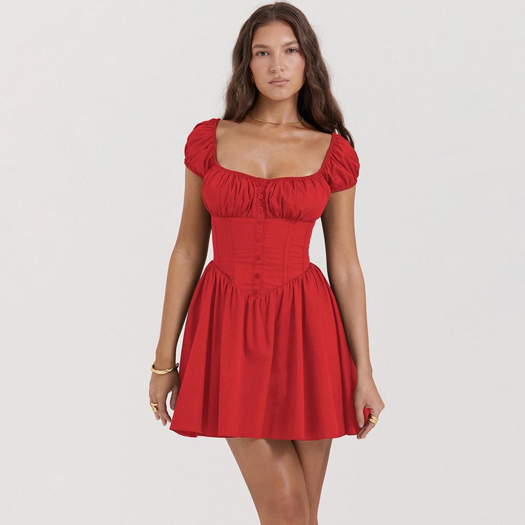 Летнее женское модное однотонное плиссированное платье длиной до колена с квадратным вырезом