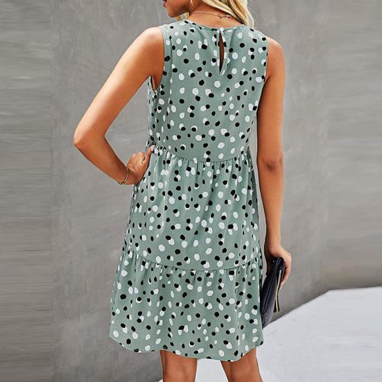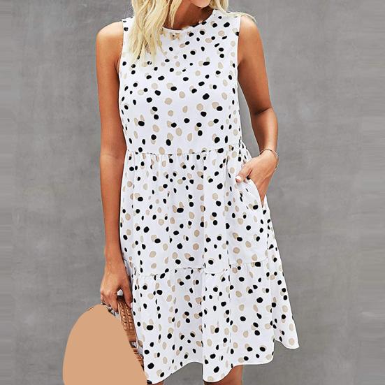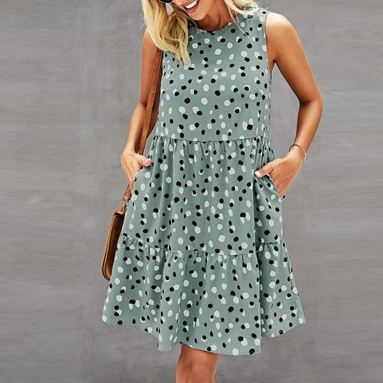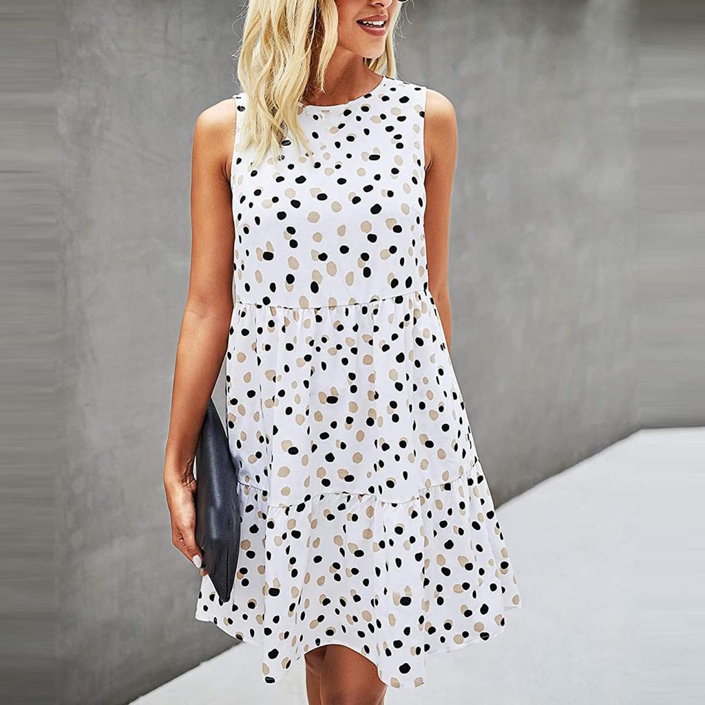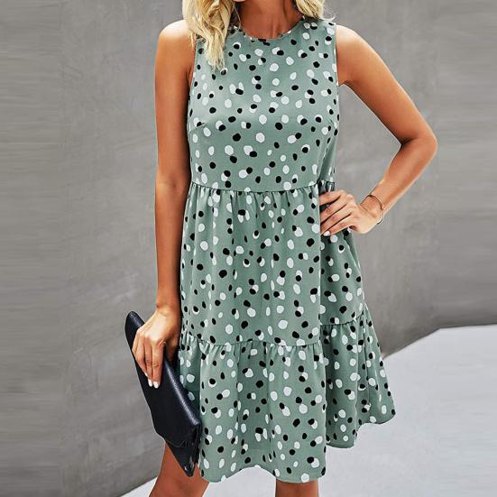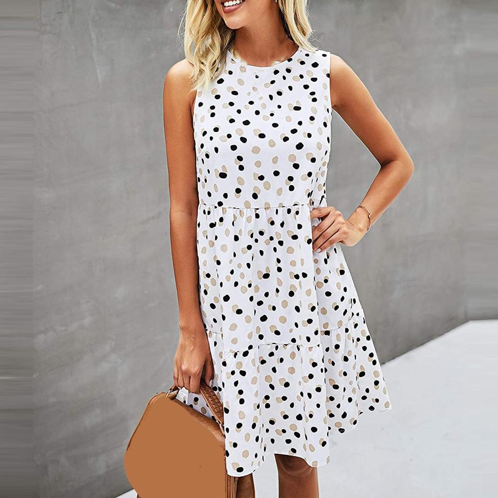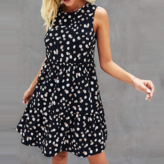 Женское платье трапециевидной формы с большим подолом и принтом в горошек без рукавов с круглым вырезом Сарафан на лето