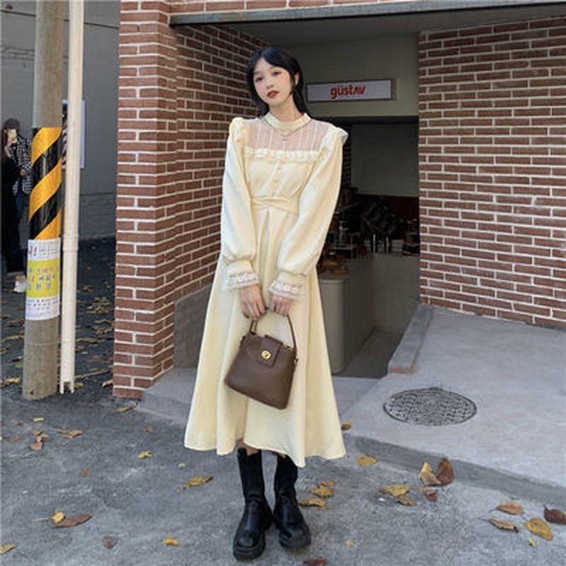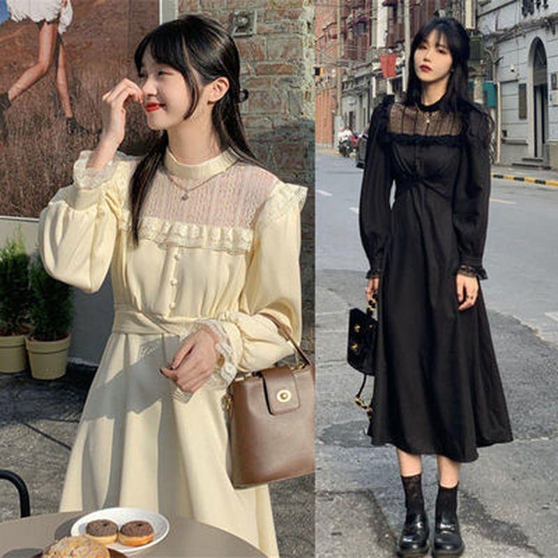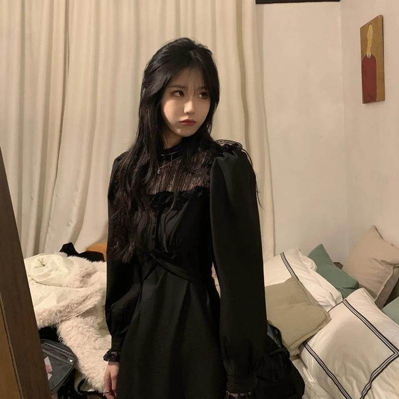 M ~ 4XL, готическое черное платье Y2k, женское платье большого размера, осеннее повседневное кружевное цельное платье с длинными рукавами, корейское вечернее элегантное женское платье миди
