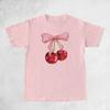 Унисекс Вишневый бант Принт Женская винтажная футболка Модная Милая футболка с коротким рукавом Cottagecore Эстетические топы Женская одежда