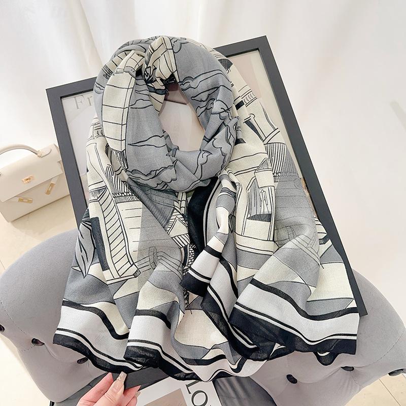 Осенне-зимняя мода хлопок и лен длинный шарф с цветочным принтом женский высококлассный элегантный теплый платок шарф на шею