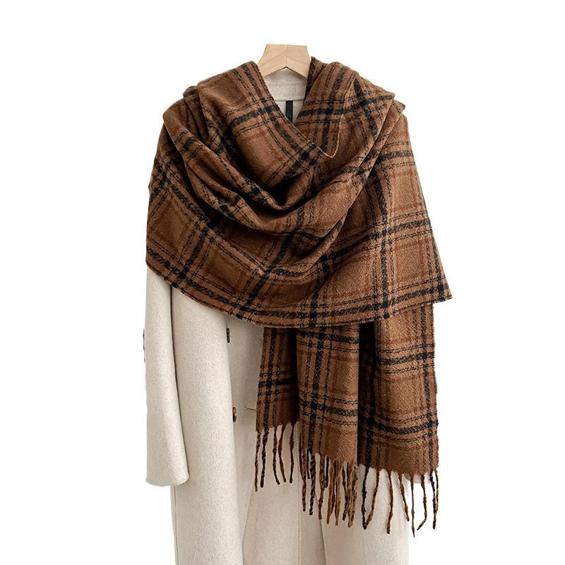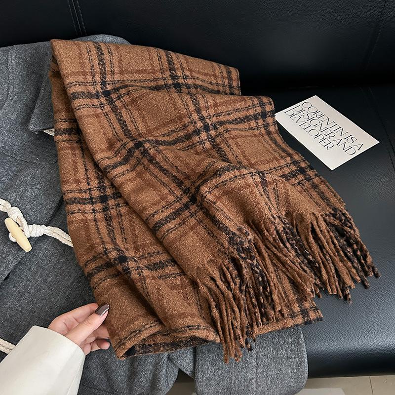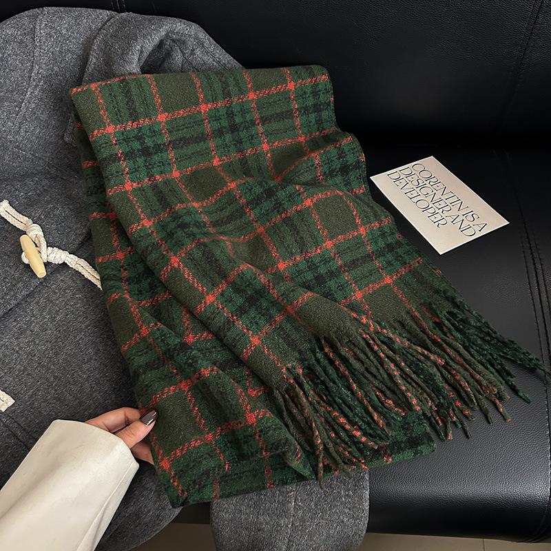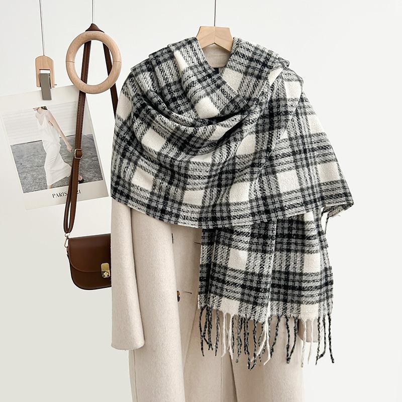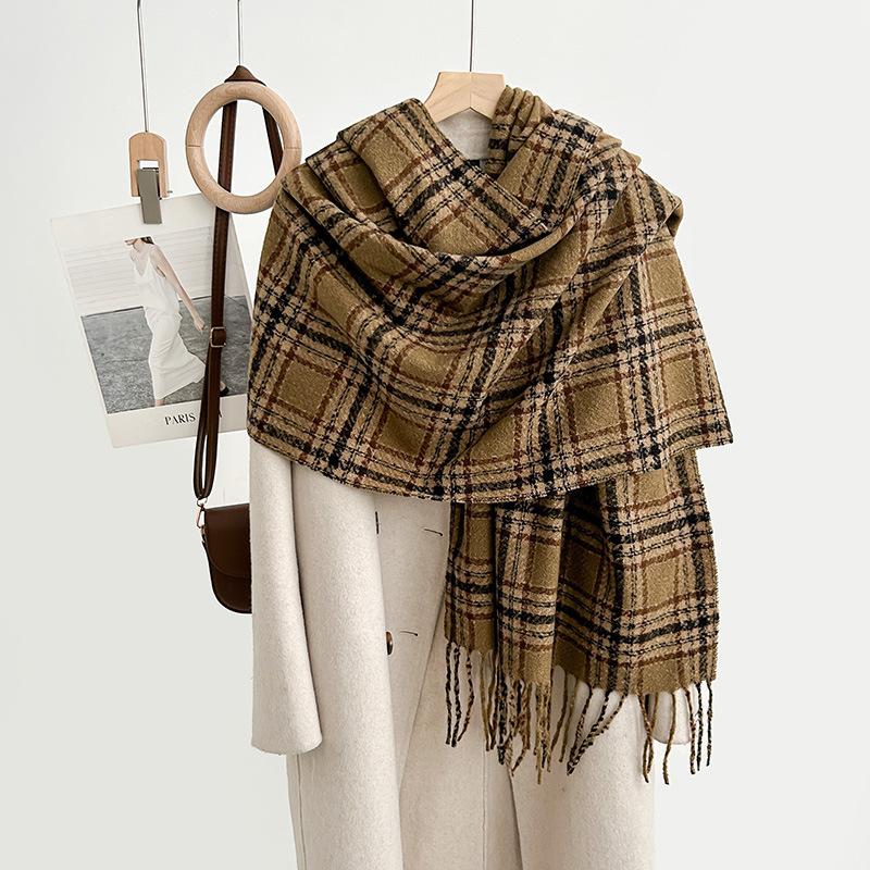 Retro literary sense, student fashion, wearing a warm scarf, autumn and winter women travel, travel photography atmosphere, fringed shawl