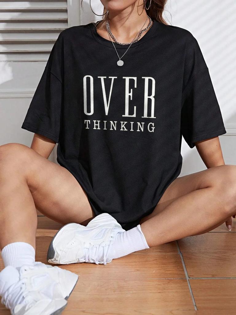 Унисекс Over Thinking Letter Print Женские топы с коротким рукавом, дышащие, винтажные, с круглым вырезом, все математические повседневные футболки, женская футболка, одежда