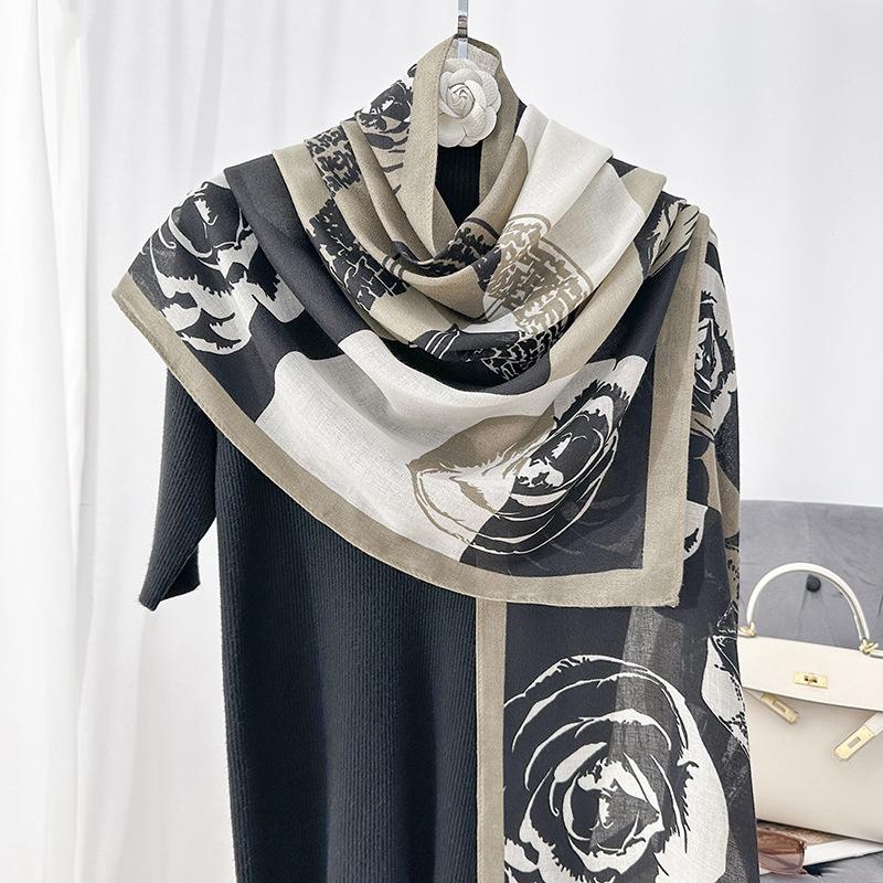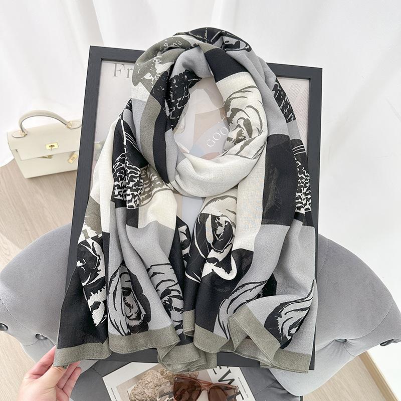 Шарф камелия модный универсальный контрастных цветов черный и белый пряжа для кондиционированного помещения теплая шаль дорожная солнцезащитная