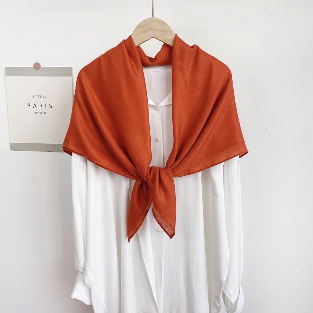 Head scarf Solid color versatile silk scarf Women's summer air-conditioned room with cotton and linen shawl Simple temperament scarf