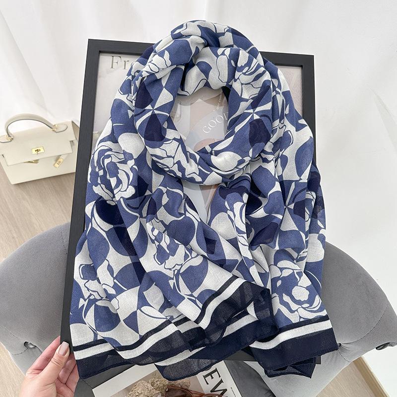 Летний тонкий хлопково-льняной шарф женский универсальный темпераментный модный шелковый шарф для путешествий солнцезащитный шарф шаль для помещения с кондиционером двойного назначения