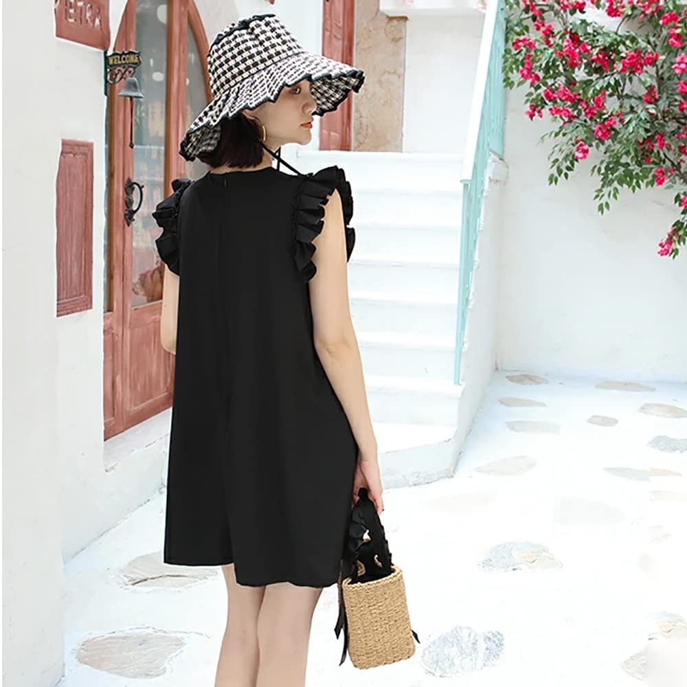 [Женский слитный купальник] Размер: M, L, Цвет: Бежевый, Черный Милый цельный рашгард с оборками на плечах. Материал плотный и не похож на рашгард, поэтому его можно носить в городе, и вы можете пойти из дома на пляж, не переодеваясь ◎ Купальник-ромпер цельного дизайна. Талия занижена, а силуэт не слишком подчеркивает линии тела, придавая ему грубоватый и девичий вид.