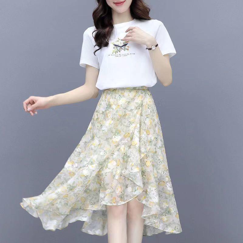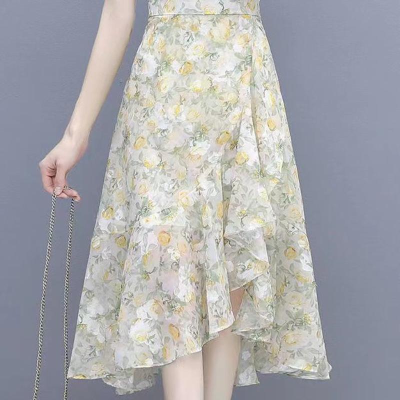 Модная юбка из шифона с нерегулярным принтом, женская летняя тонкая, стройнящая, элегантная, повседневная, свободная, универсальная, свежая женская одежда, юбка