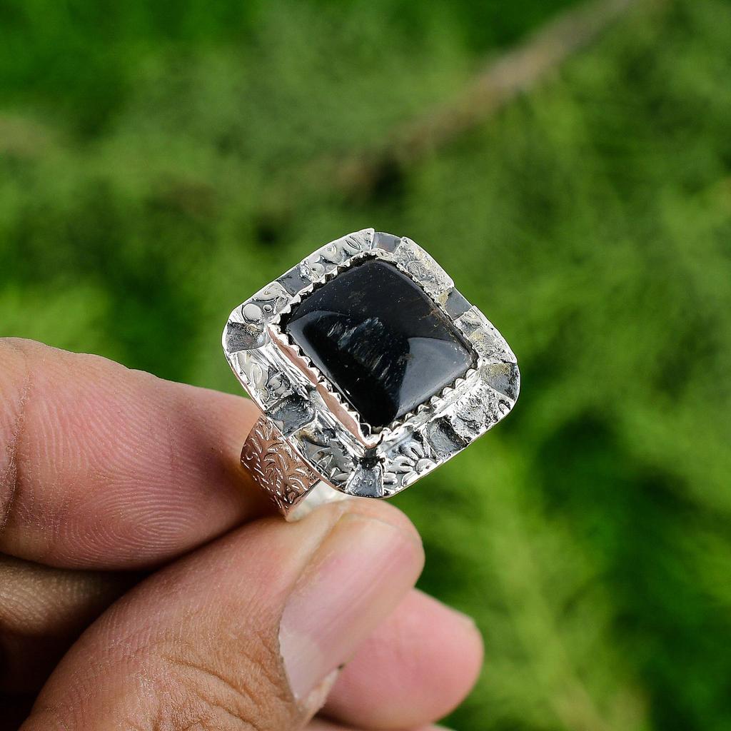 Подарок для нее Натуральный черный тигровый глаз Кольцо-обещание с регулируемым размером Серебро 925 пробы