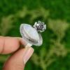 Natural Rainbow Moonstone 925 Silver Promise Flower Adjustable Ring For Girls