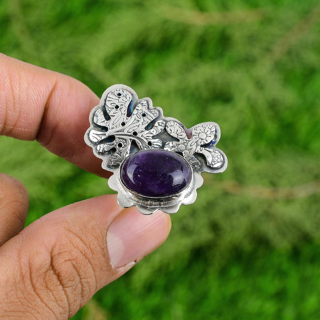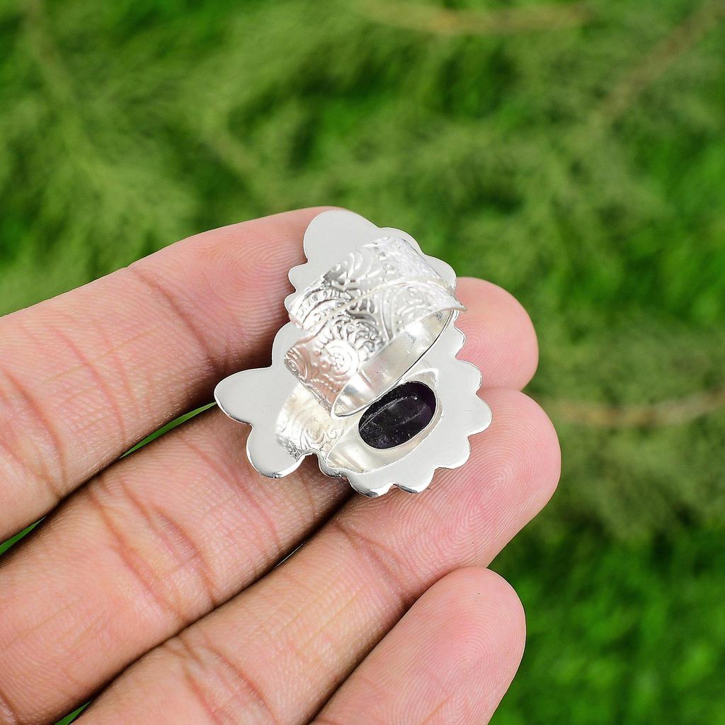 Mothers day Deal 925 Sterling Silver African Amethyst Gemstone Statement Ring
