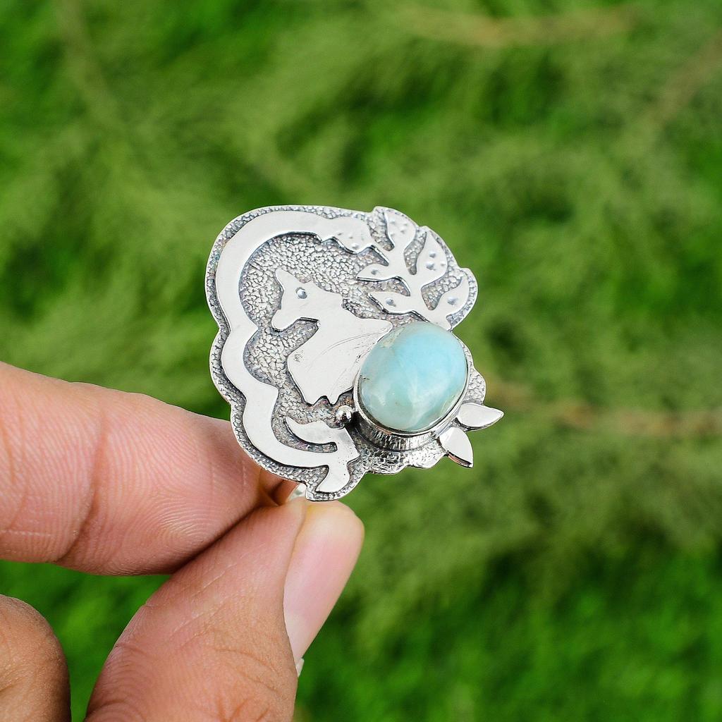Овальный Ларимар Драгоценный камень Новое Обещание День Рождения Дочери Кольцо Ювелирное изделие Стерлинговое серебро