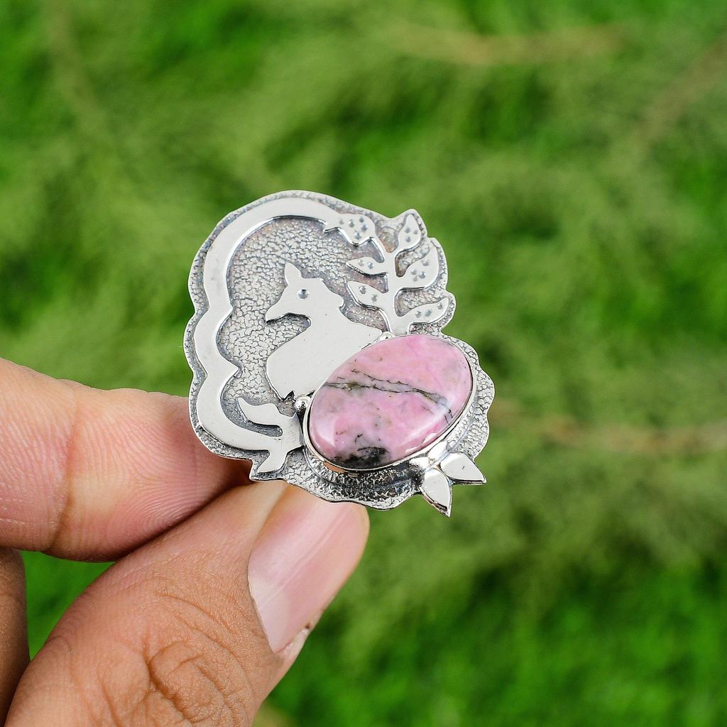 Кольцо-солитер из стерлингового серебра с овальным родонитом в безеле и перламутром — купить товар онлайн с бесплатной доставкой по всему миру!