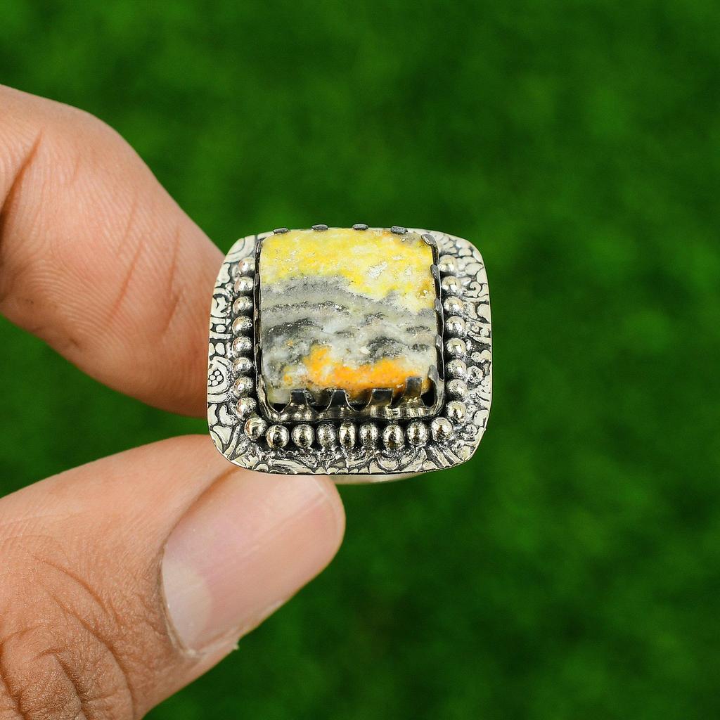 Кольцо-стейтмент из стерлингового серебра 925 пробы с натуральным джаспером «шмель», в стиле бохо, штабелируемое, размер США 7