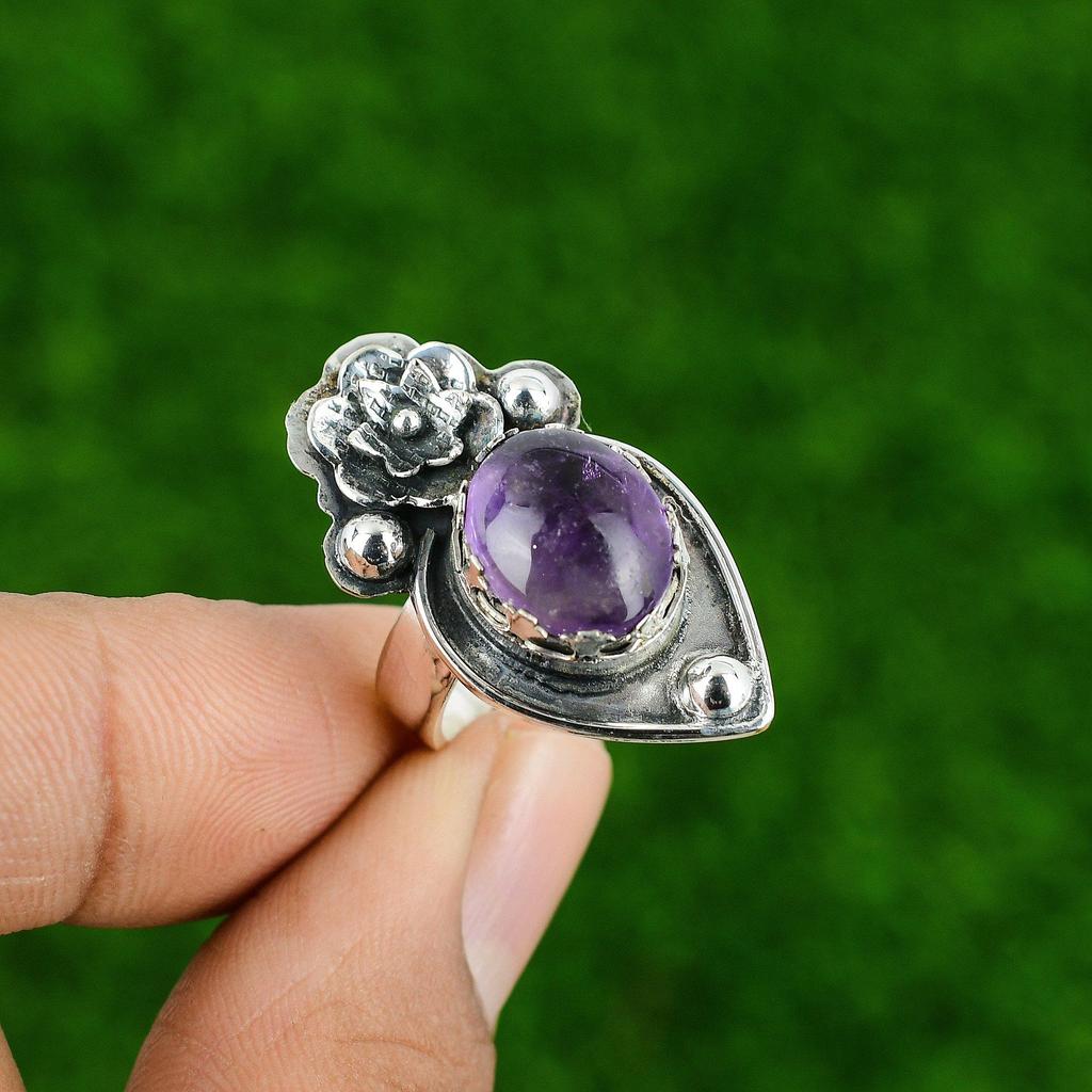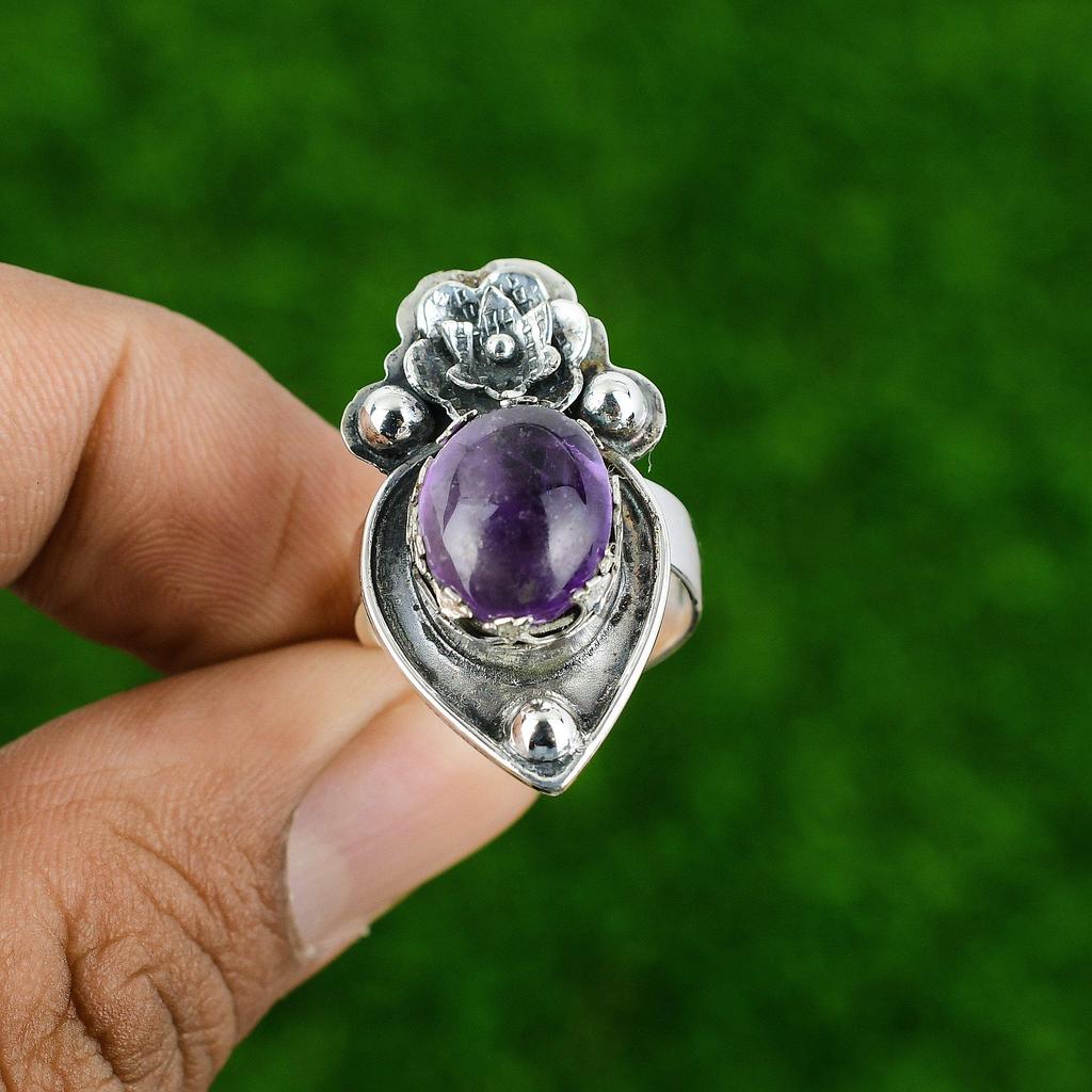 Натуральный африканский аметист серебро 925 пробы кольцо-обещание цветок регулируемое для девочек