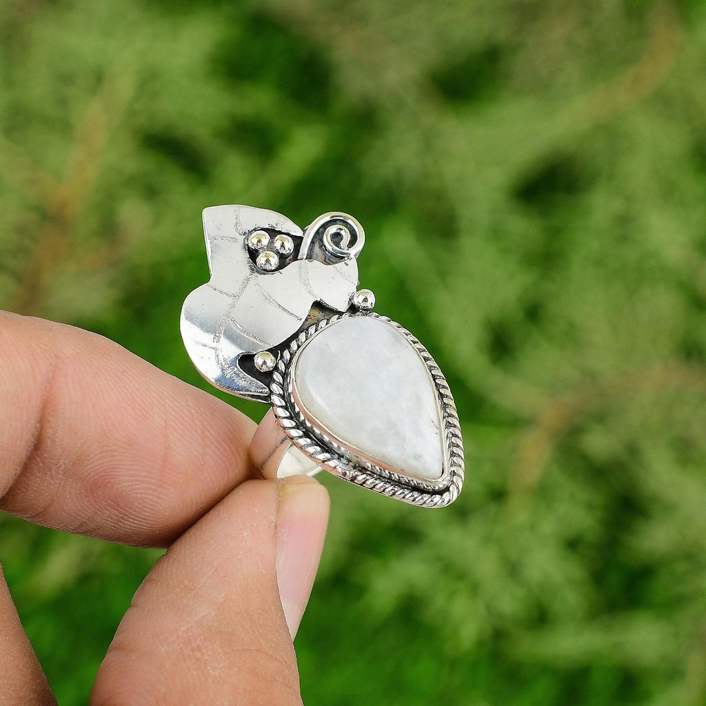 Natural Rainbow Moonstone Gemstone Solitaire Ring Size 7 925 Sterling Silver