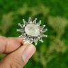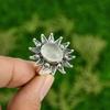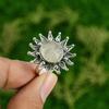 Подарок для нее Кольцо-обещание из серебра 925 пробы с натуральным радужным лунным камнем в виде цветка, регулируемое