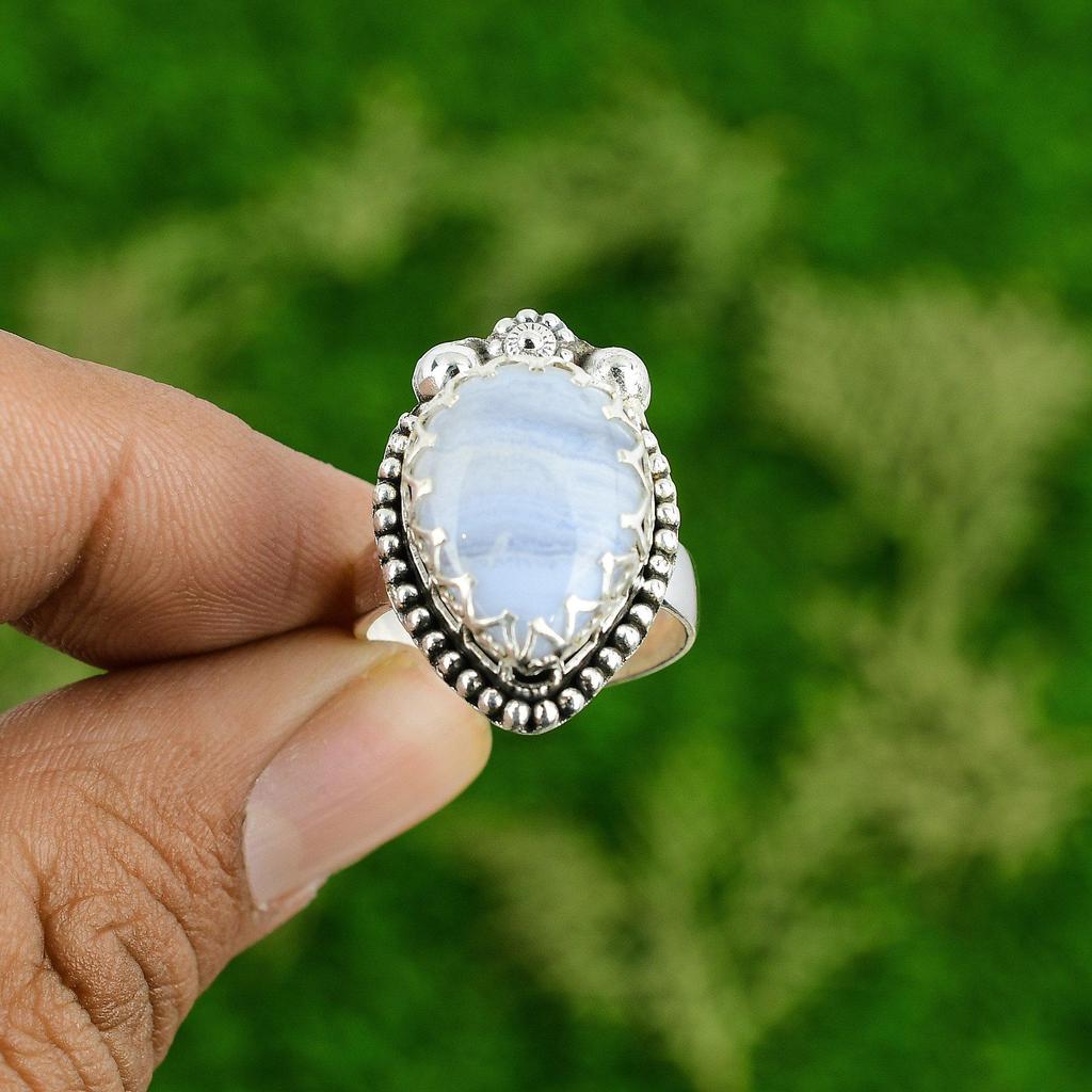 Голубой кружевной агат драгоценный камень серебро 925 пробы уникальная безельная эффектная сестра кольцо ювелирное изделие