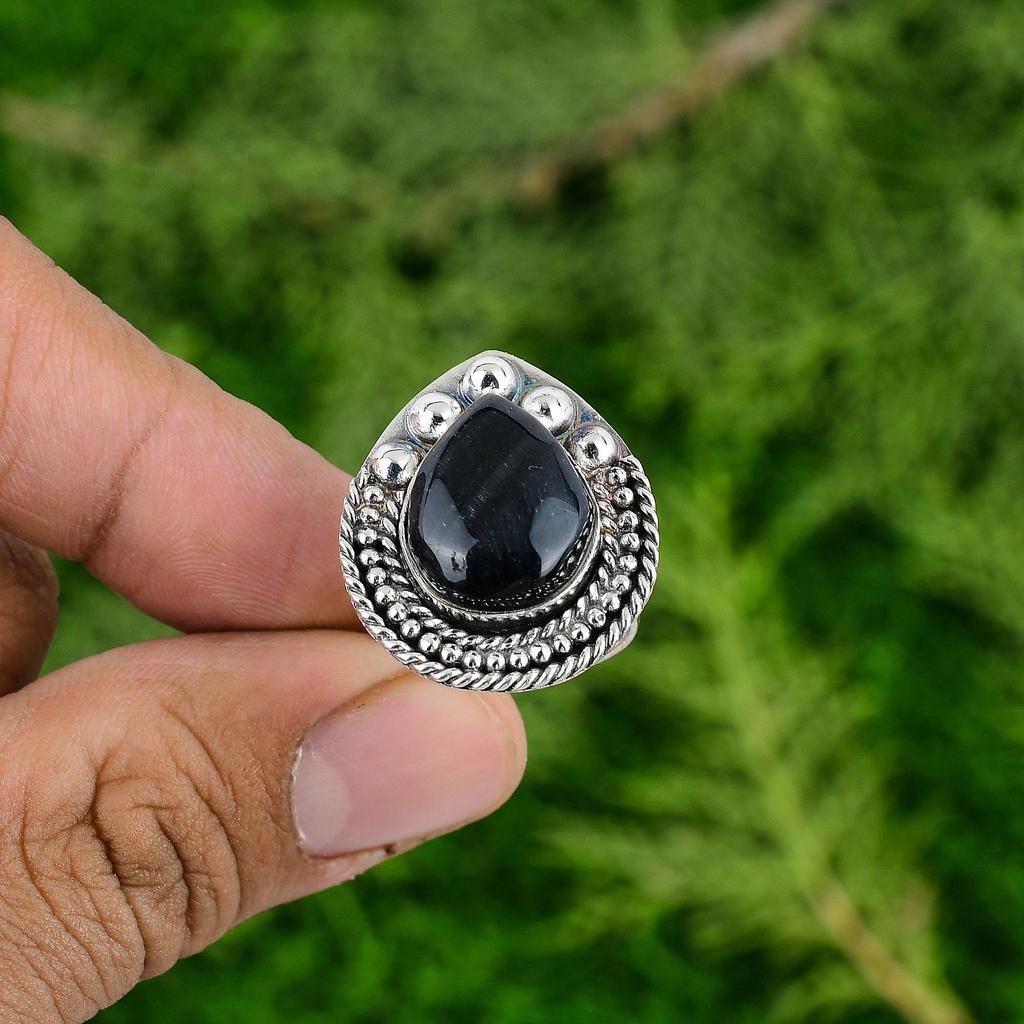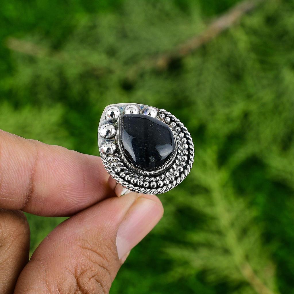 Неллит Драгоценный камень 925 Серебро Ручной работы Арт Деко Солитер Заявление Безель Кольцо