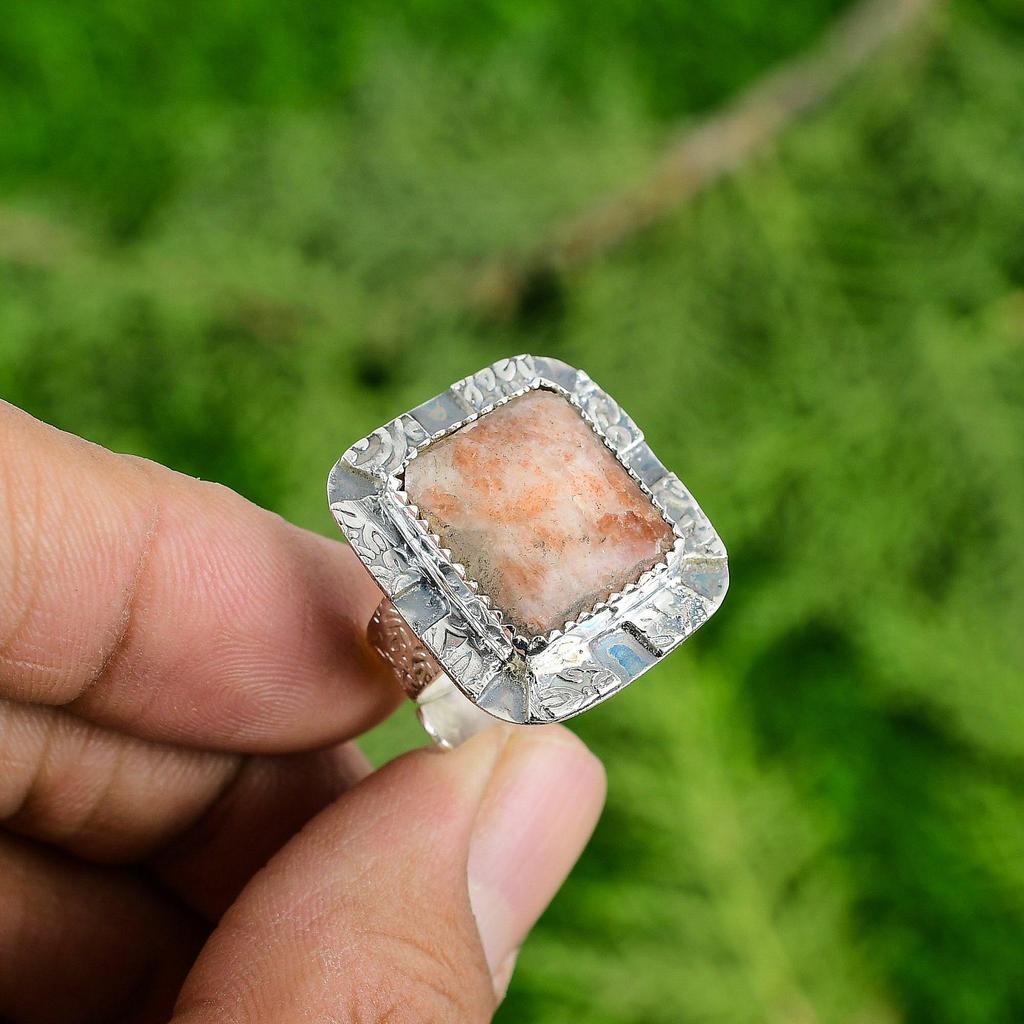 Подарок для нее Кольцо-солитер из серебра 925 пробы с натуральным солнечным камнем, регулируемое — купить товар онлайн с бесплатной доставкой по всему миру!