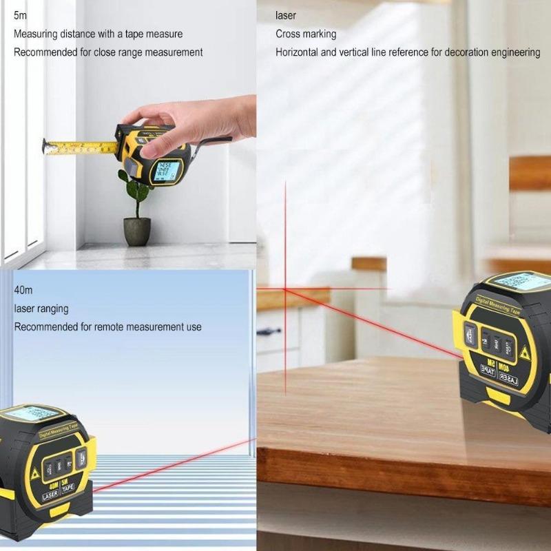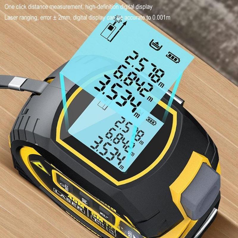 Лазерный дальномер 3-в-1 Стальная рулетка Дальномер Внутренняя лазерная рулетка