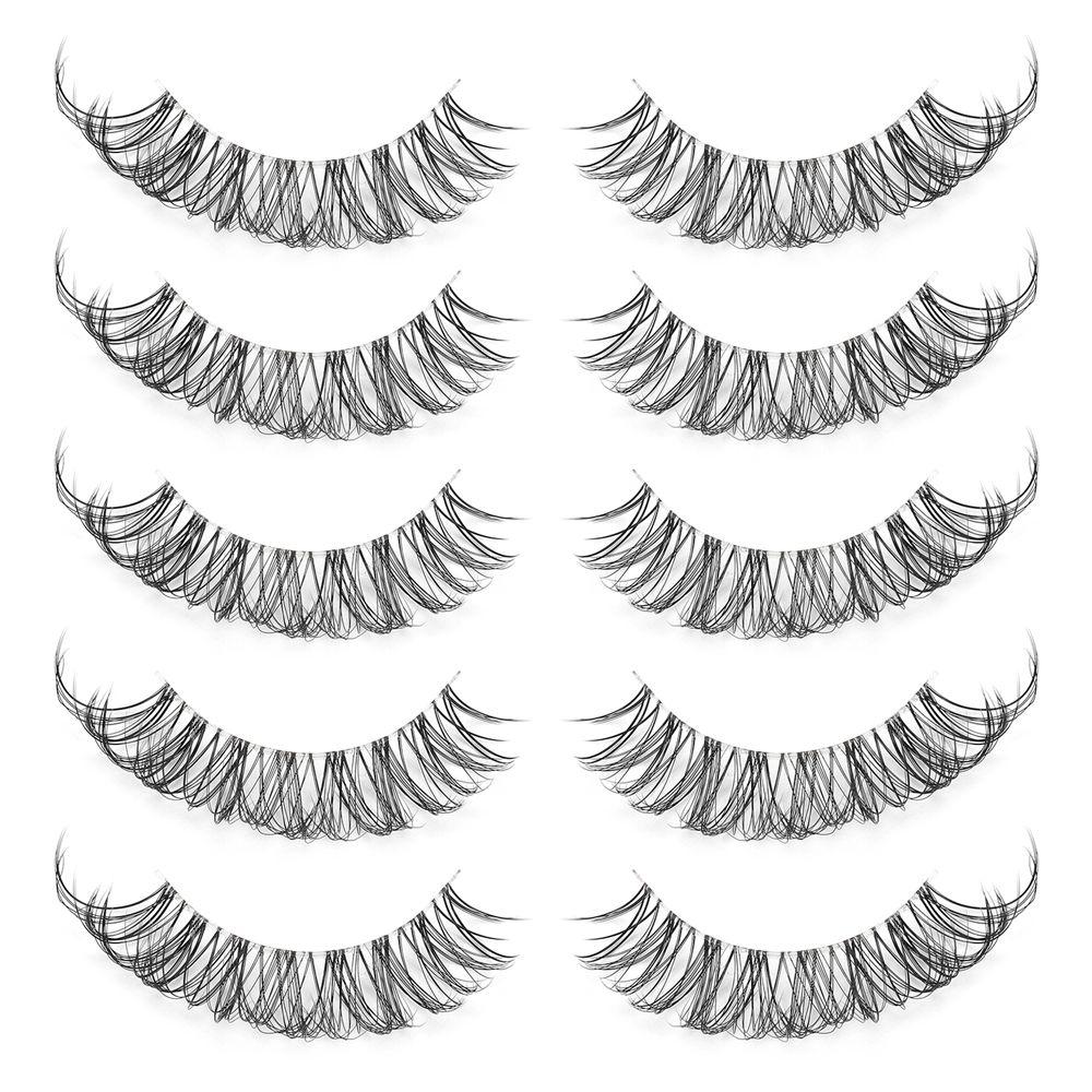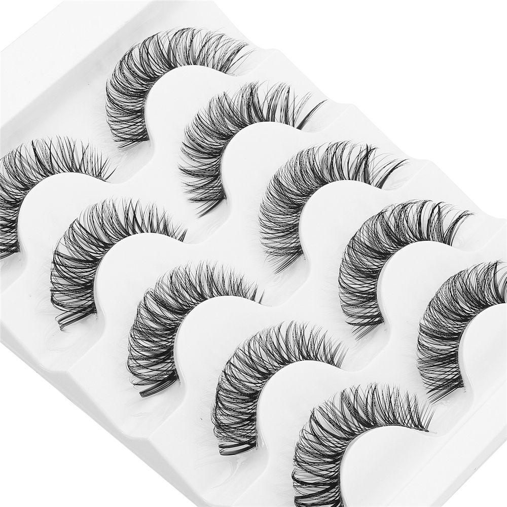 5 Pairs Natural Look Wispy Fluffy Eyelash Extension Clear Band False Eyelashes Russian Strip Lashes