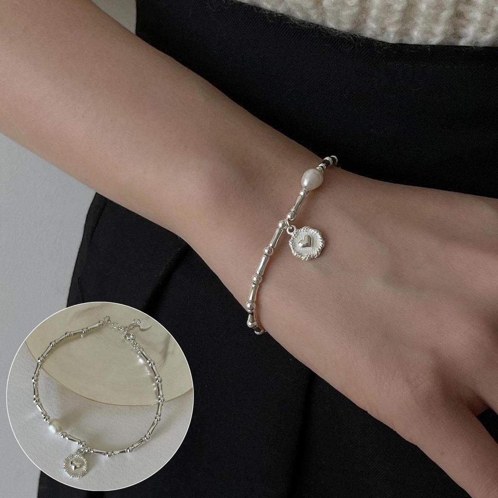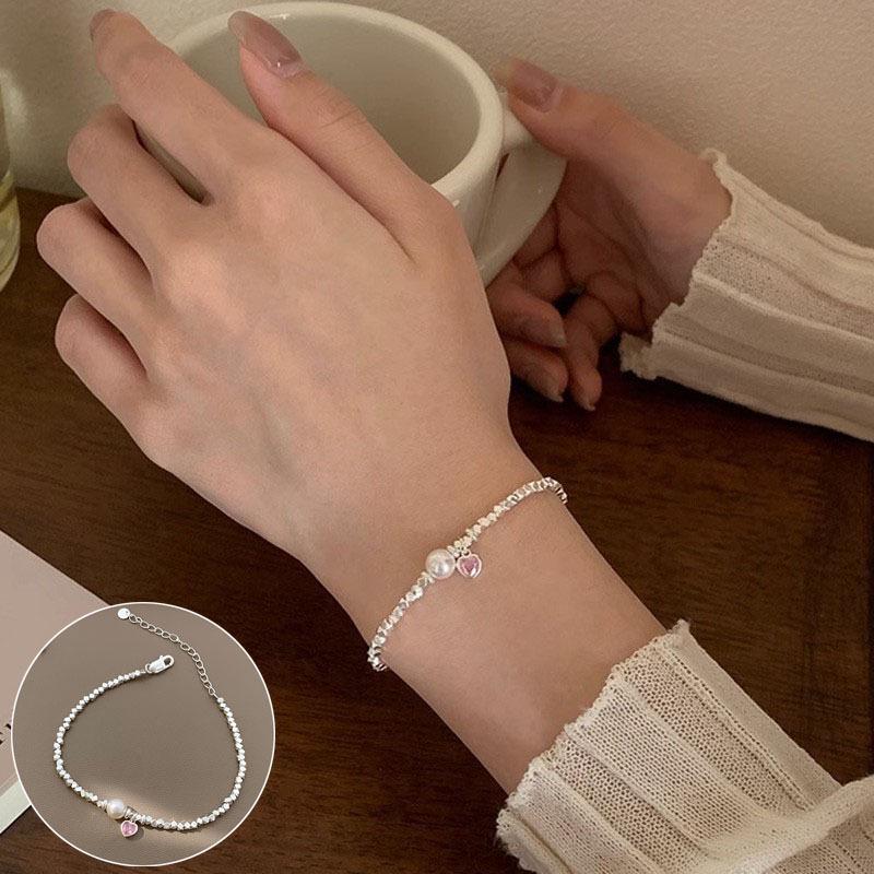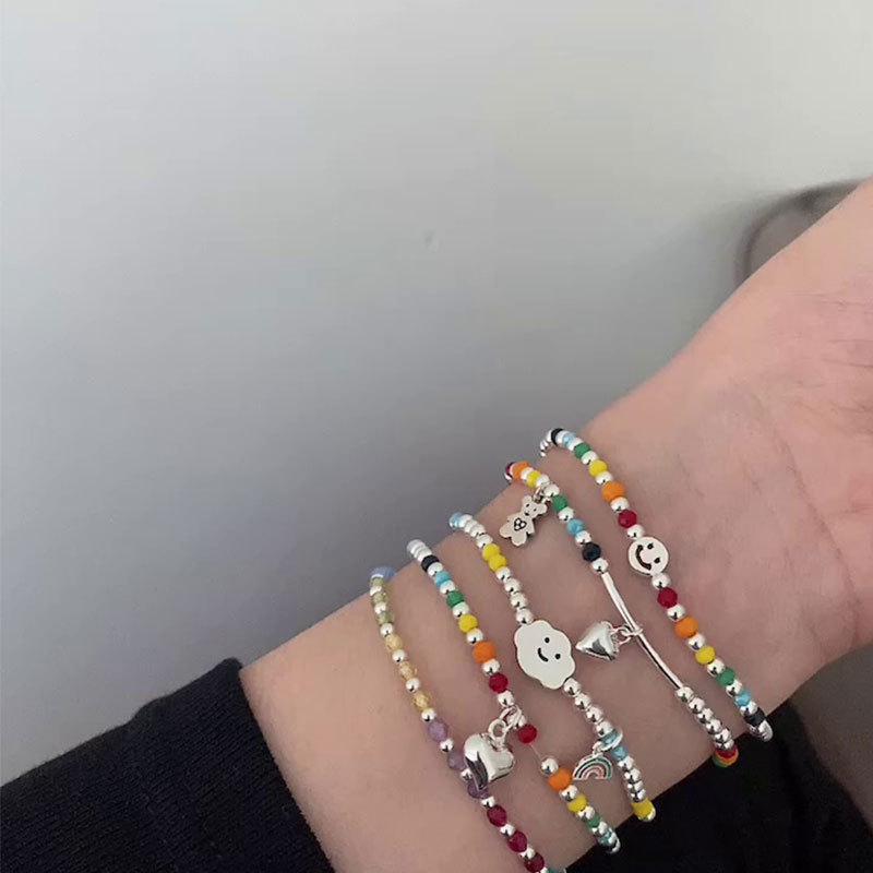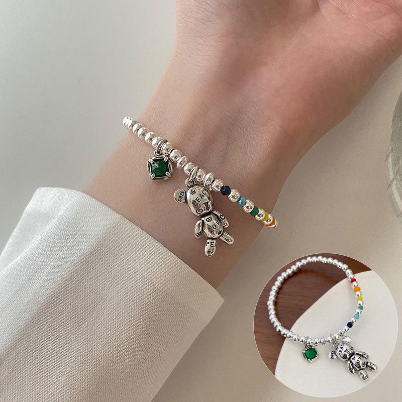 Браслет в корейском стиле из серебра 925 пробы с радужными бусинами в форме сердца и мишкой - Женская модная бижутерия