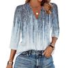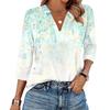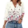 Женская мода Повседневная рубашка с лацканами и рукавами 3/4 с принтом Женские топы с V-образным вырезом