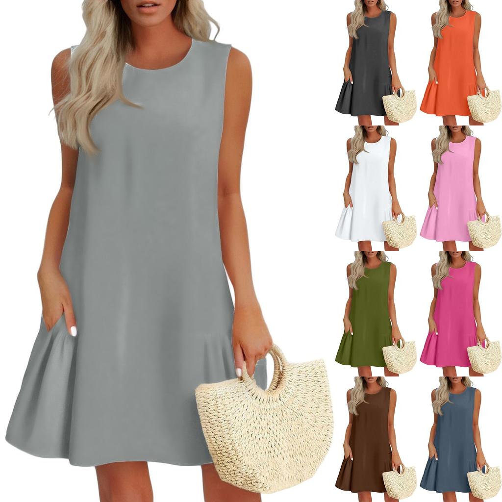 Женские модные повседневные платья без рукавов с круглым вырезом и оборками — купить товар онлайн с бесплатной доставкой до всему миру!