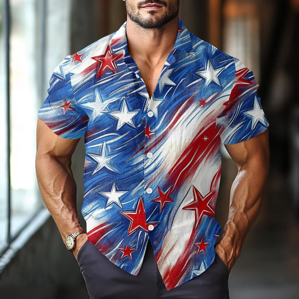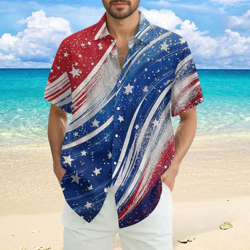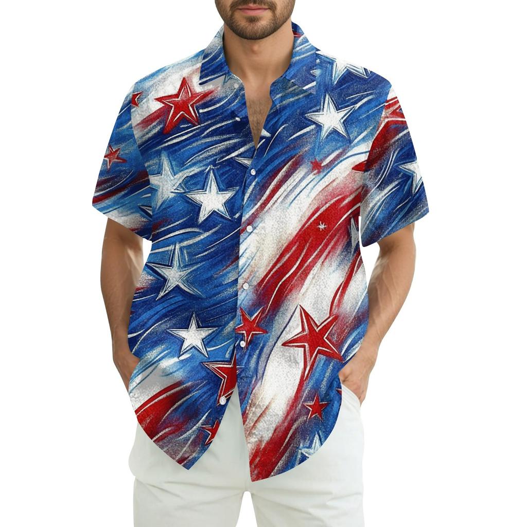Мужская повседневная рубашка с короткими рукавами и принтом «День независимости»