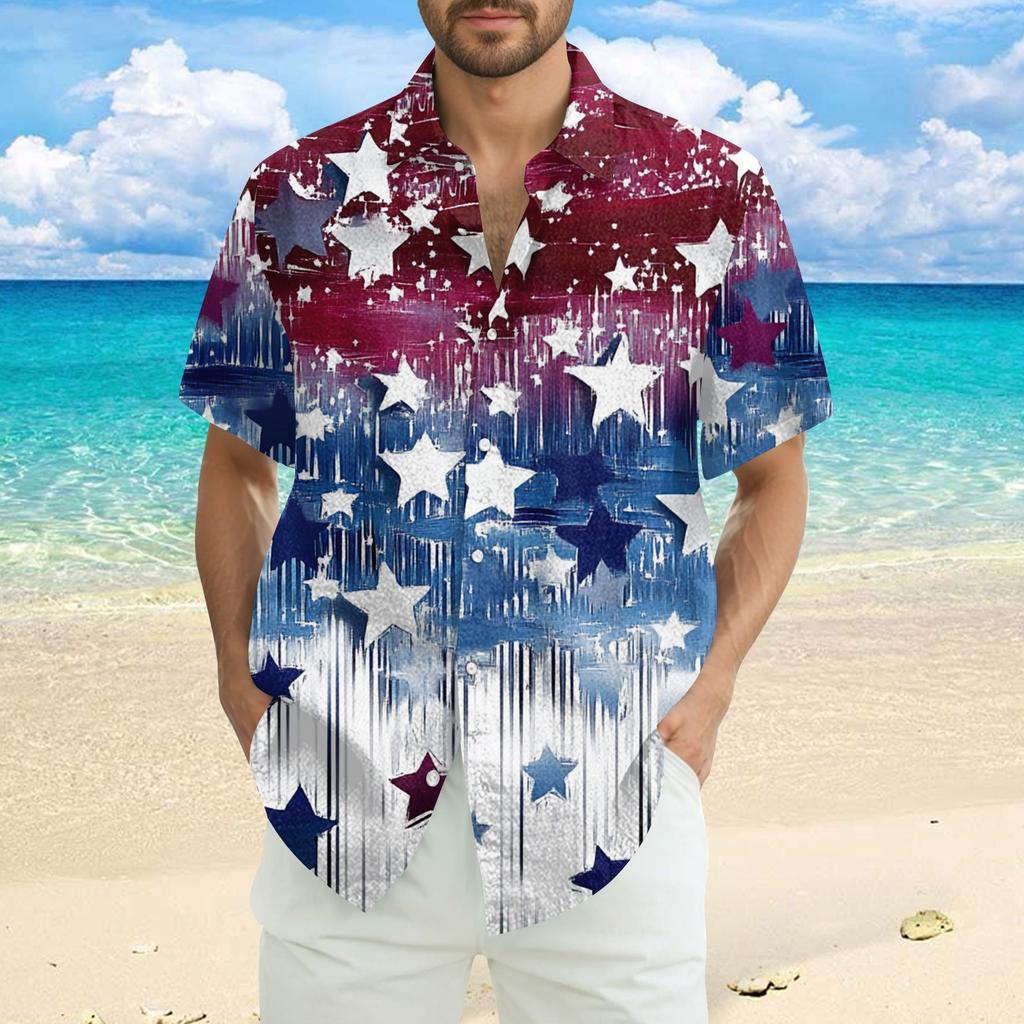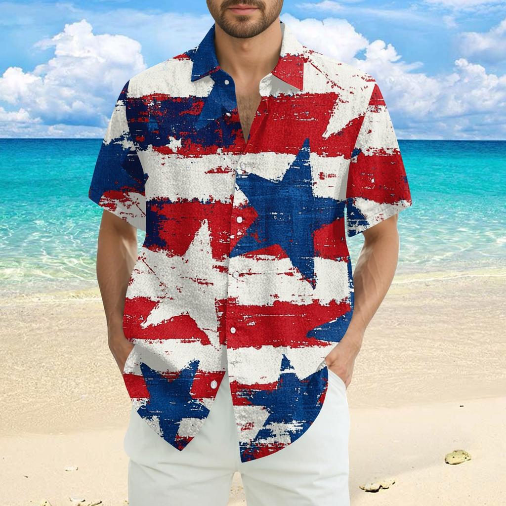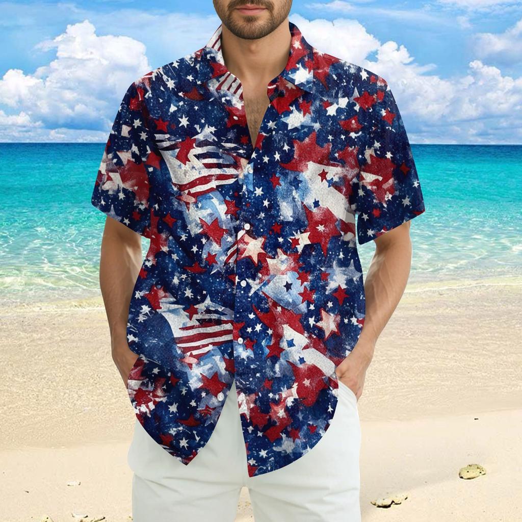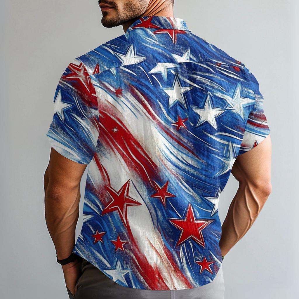 Мужская повседневная рубашка с короткими рукавами и принтом «День независимости»