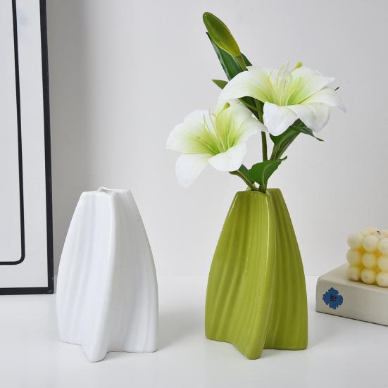 Украсьте свой дом этой изысканной вазой.. Изготовленное из высококачественного пластика, это прочное изделие обеспечивает устойчивость и стиль.. Его простой, но элегантный дизайн отличается плавными линиями и уникальной формой, что делает его универсальным дополнением для любого пространства..