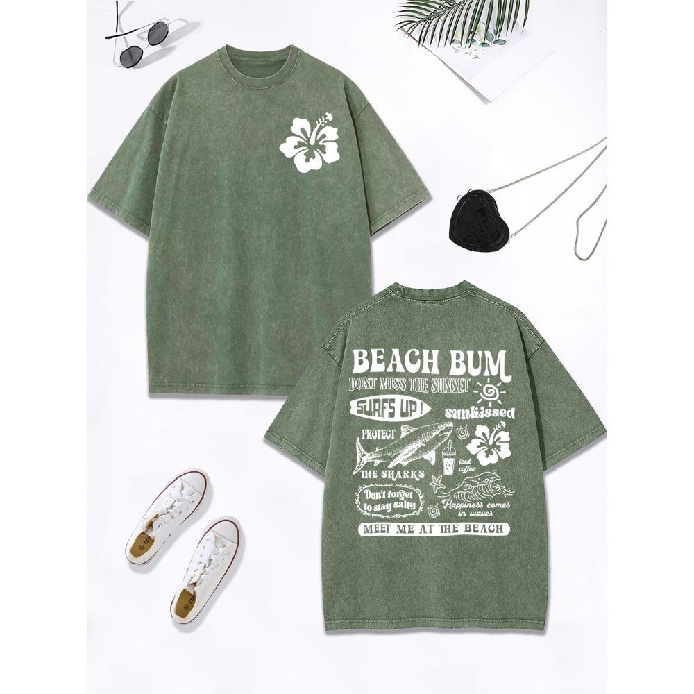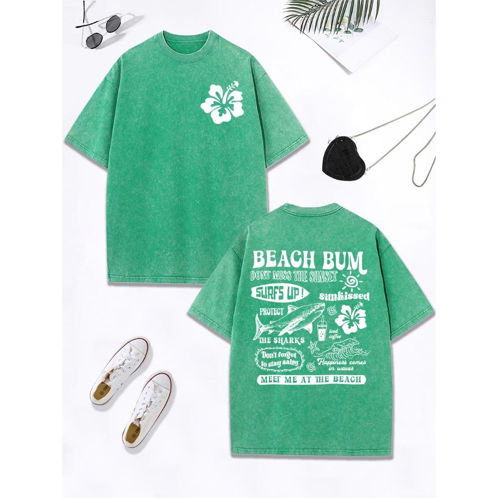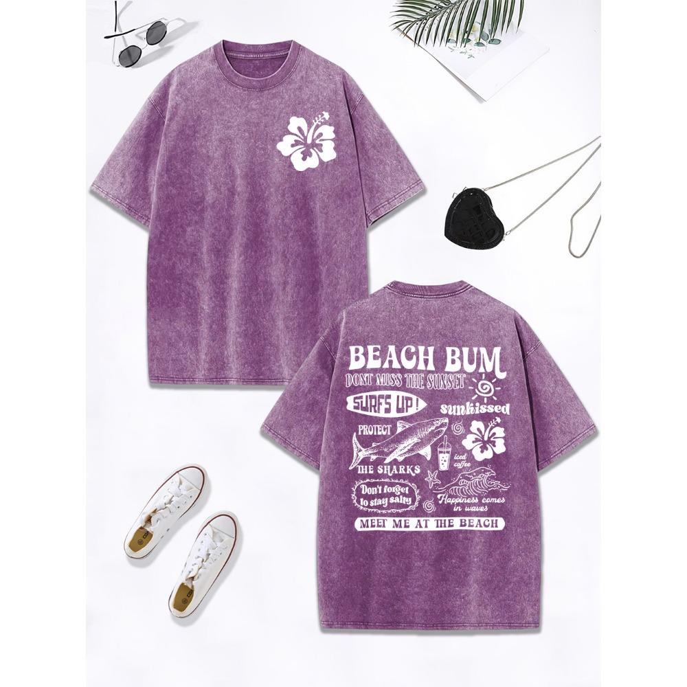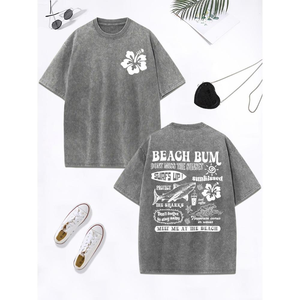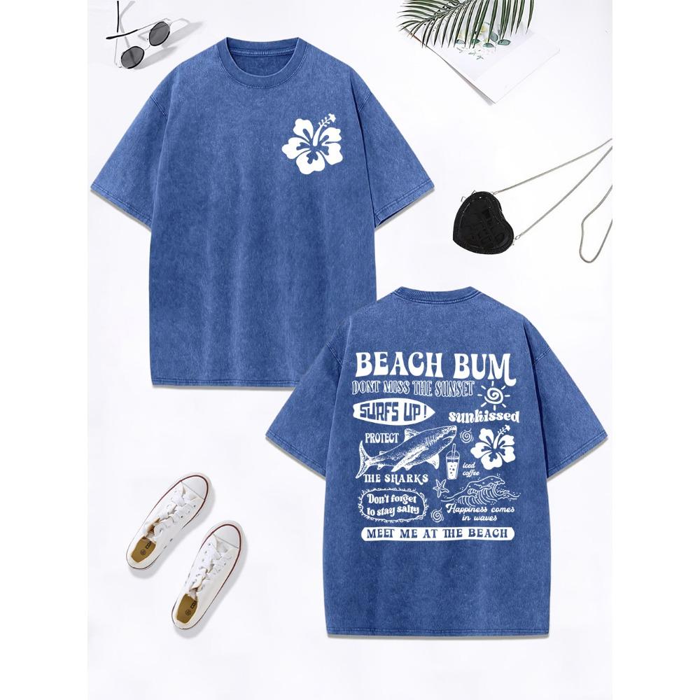 Пляжный закат Серфинг Встретимся Принты Выстиранная футболка Женщины Хлопок Оверсайз Топы Уличная Потертая Футболка с круглым вырезом Одежда