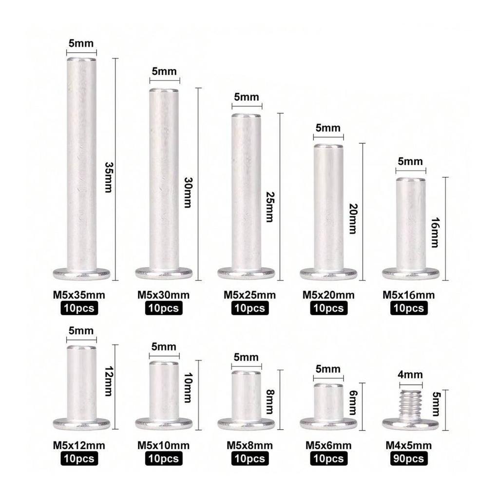 Набор из 180 штук крепежных винтов в ассортименте, винты-стойки из нержавеющей стали 304 для DIY-декорирования, фотоальбомов, переплета книг(10 размеров
