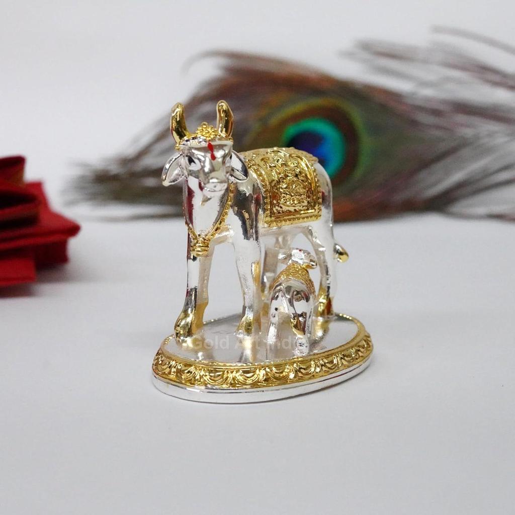 Идол коровы Камдхену с теленком с золотым и серебряным покрытием (Две тонны)| Домашний декор Гай Бачда Корова | Теленок для Васту | Положительная энергия