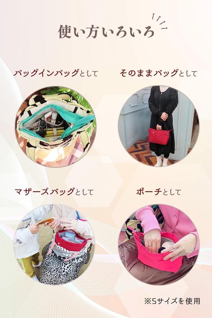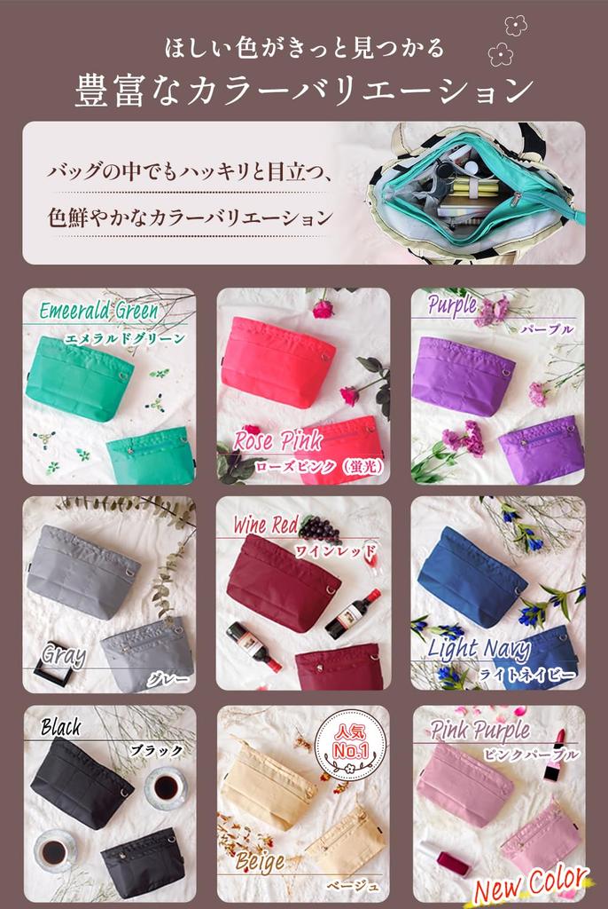 [Название продукта] CtwoQ Сумка-в-сумке Внутренняя сумка Легкая Самостоятельно стоящая Большая вместимость Сумка для хранения Сумка-тоут Женская Мужская / Цвет: Бежевый, Черный, Светло-синий, Винно-красный, Изумрудно-зеленый, Розово-розовый (флуоресцентный), Серый, Фиолетовый / размер M: Ш300/В240/Г110мм (190г) S размер: Ш250/В200/Г90мм (140г) Размер СС: Ш210/В170/Г75 мм (110г) / Материал: Полиэстер
