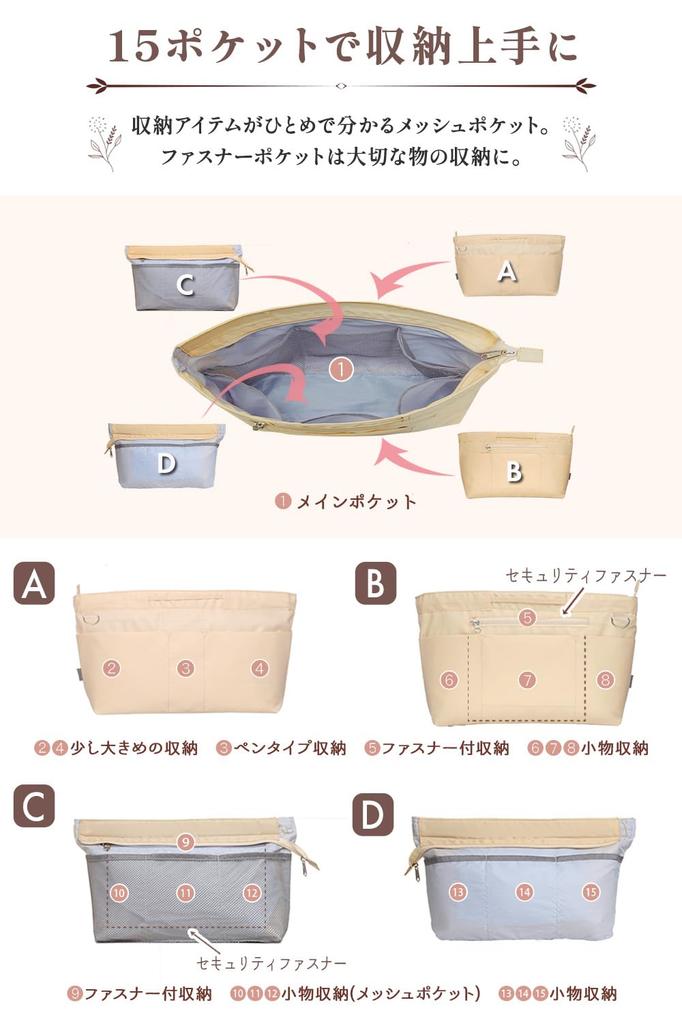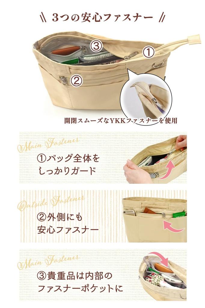 [Функция] Сумка-вкладыш CtwoQ — это компактная, но очень вместительная внутренняя сумка.. С 15 карманами (2 из которых на молнии), вы можете организовать и носить все необходимые вещи. В него можно положить что угодно, например, пишущие принадлежности, смартфоны, зарядные кабели, косметику и блокноты.. Более того, ткань обладает высокой водоотталкивающей способностью, легкая и прочная.. Он также отлично сохраняет свою форму.. На ощупь он гладкий и приятный.. Эта сумка сделана из гибкого материала, поэтому она естественным образом принимает форму сумки.. Он совместим с сумками различных брендов, таких как LOUIS VOITTON neverfull, Ron Herman, coach и Tumi. У него есть ручка, поэтому вы можете заменить содержимое сумки все сразу.. Сумка-органайзер CtwoQ также является отличным изделием, которое можно использовать отдельно.. Благодаря своему простому и стильному дизайну, он подходит для любого случая.. Пожалуйста, попробуйте.
