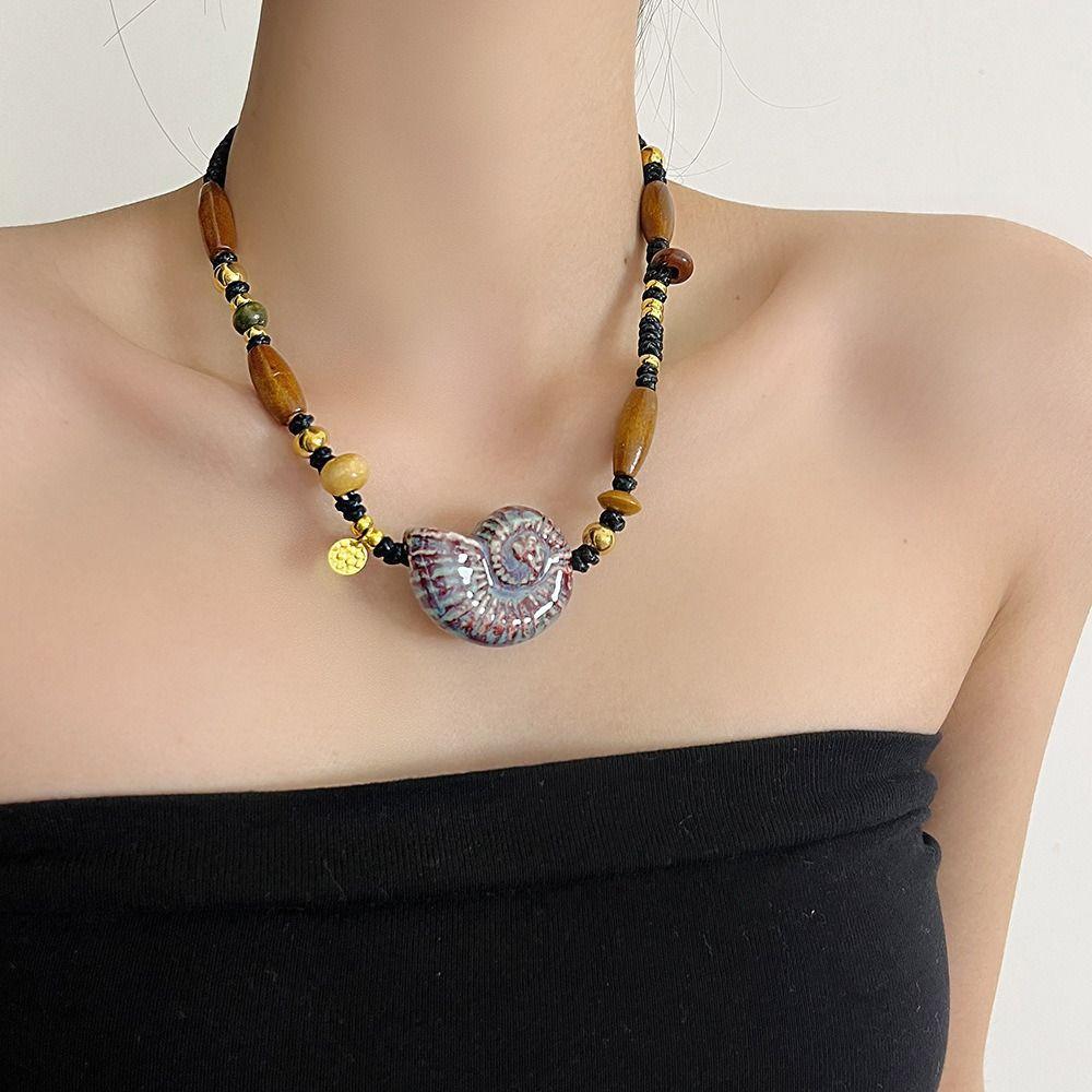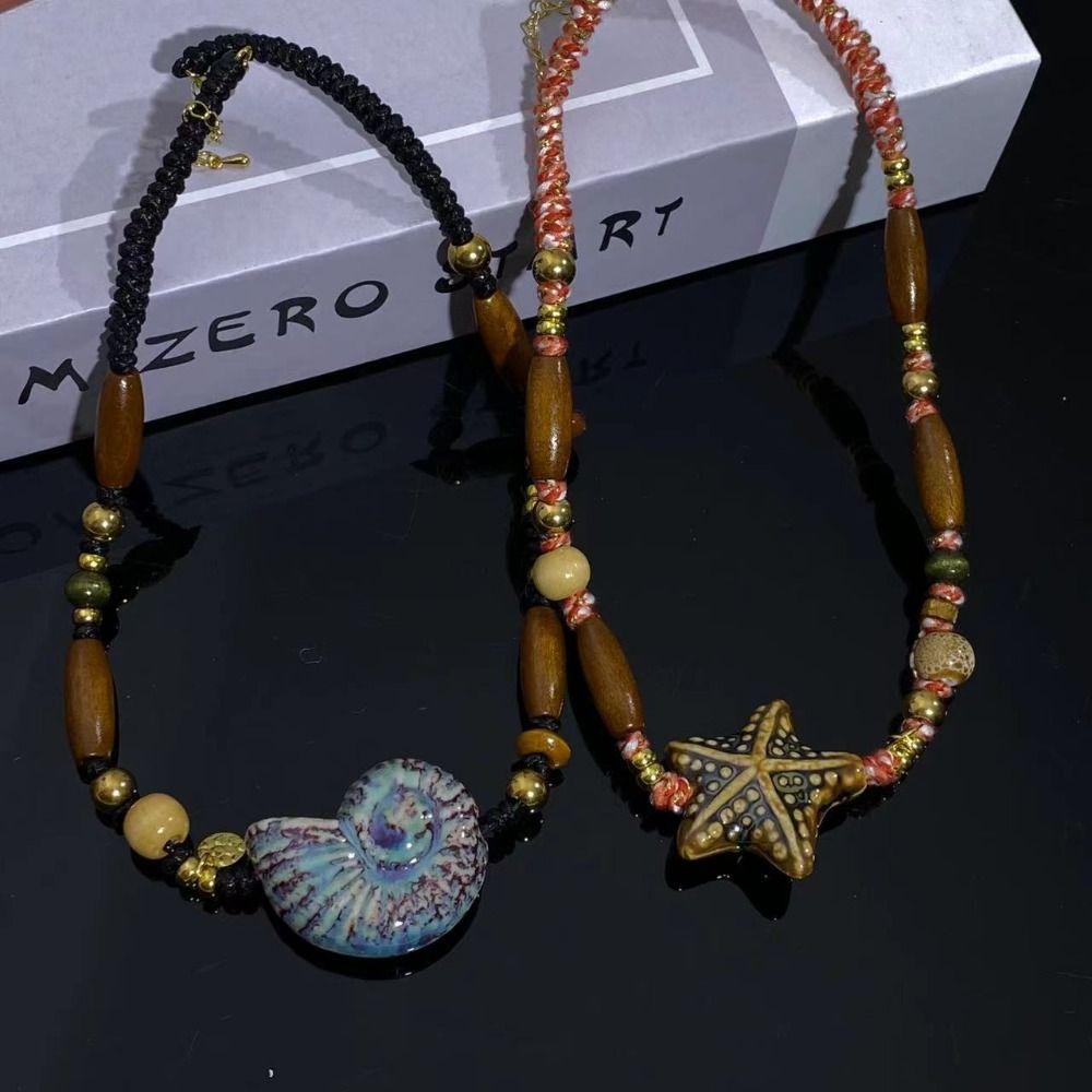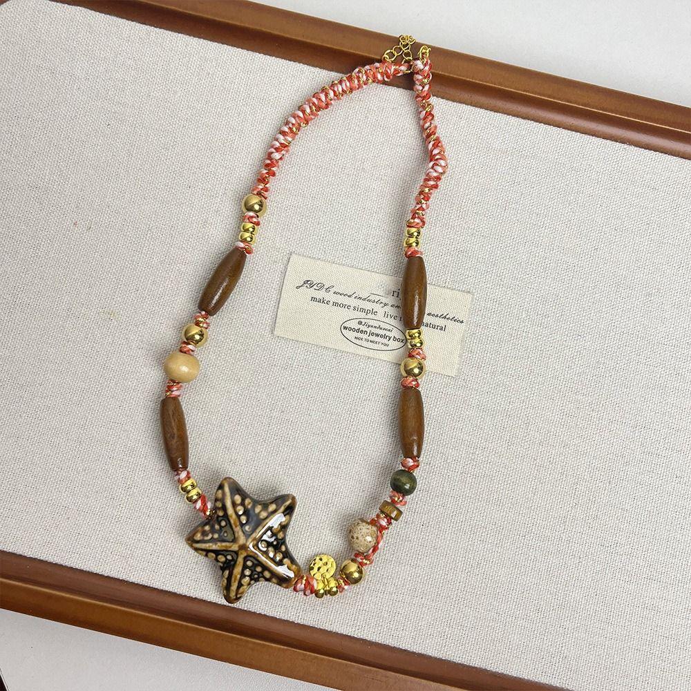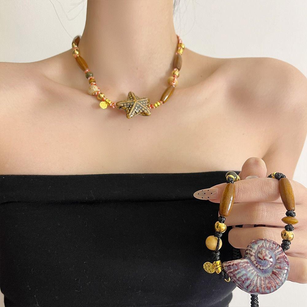 Ожерелья из керамических бусин в виде морских звезд, милые богемные ожерелья с подвесками-каплями в этническом стиле, хипстерские