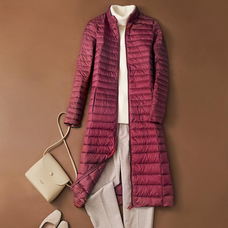 Женские ультралегкие пуховики со стойкой воротником, приталенные, длиной до колена, пальто из белого утиного пуха, женские пуховики, дамские пальто