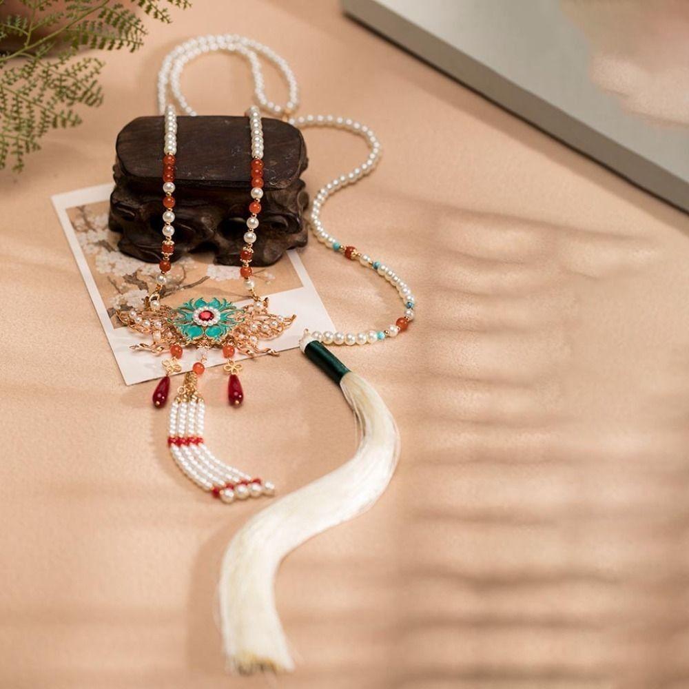 Этнический стиль Юбка с лошадиной мордой Ожерелье Жемчужное ожерелье с длинной кисточкой Ожерелье в китайском стиле Ханфу