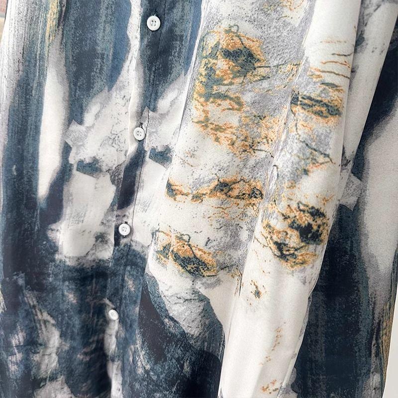 Мужская модная винтажная рубашка с принтом тай-дай в технике стирки чернилами, с лацканами и на пуговицах, Y2K, уличная одежда Харадзюку, с длинным рукавом, свободные топы, Camisas De Hombre