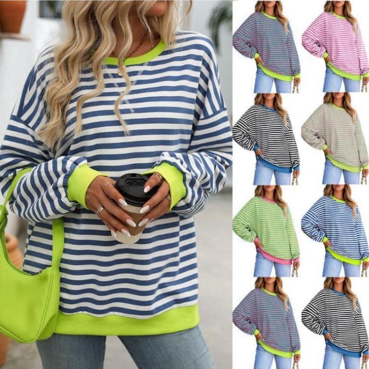 Женский повседневный оверсайз свитшот в полоску, пуловер свободного кроя, футболка с длинным рукавом и круглым вырезом, удобный свитер-рубашка — купить товар онлайн с бесплатной доставкой по всему миру!