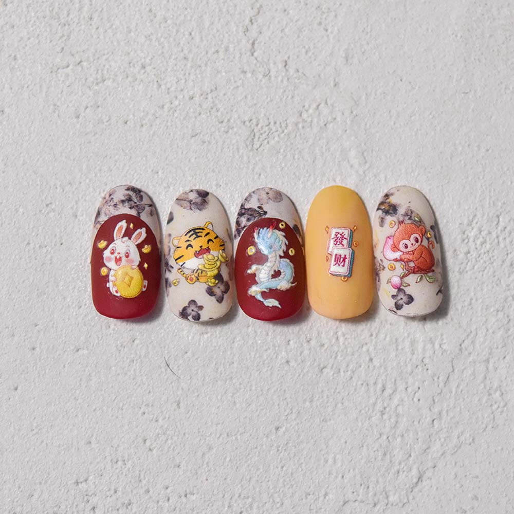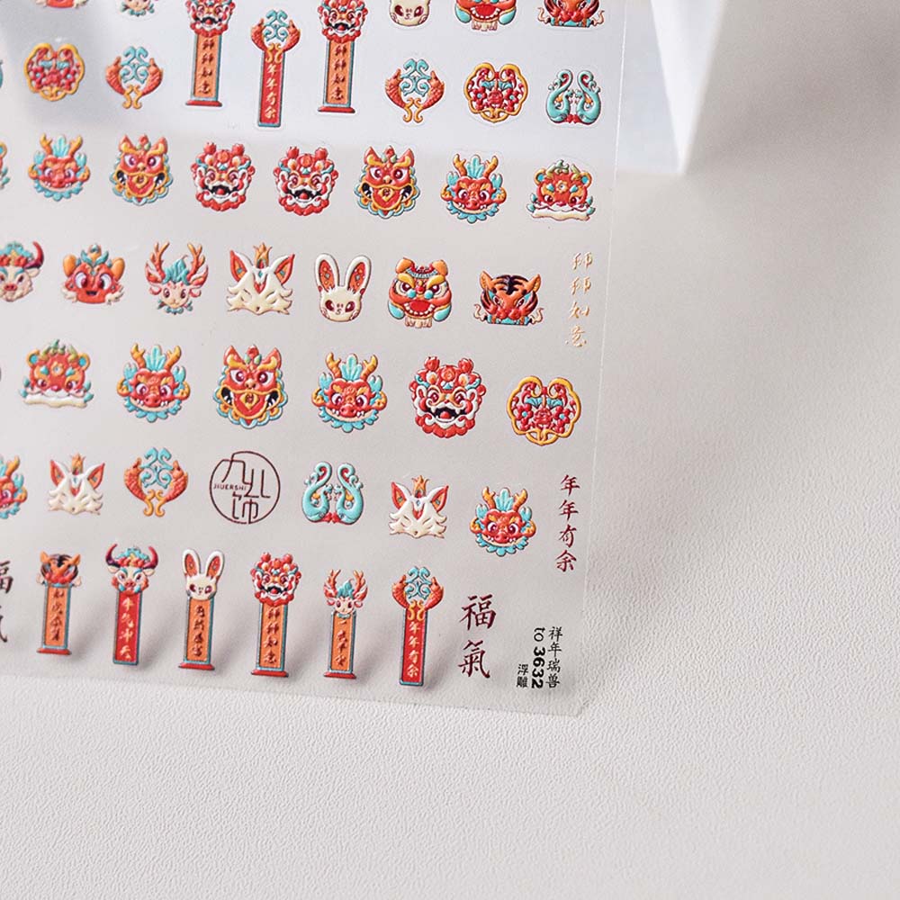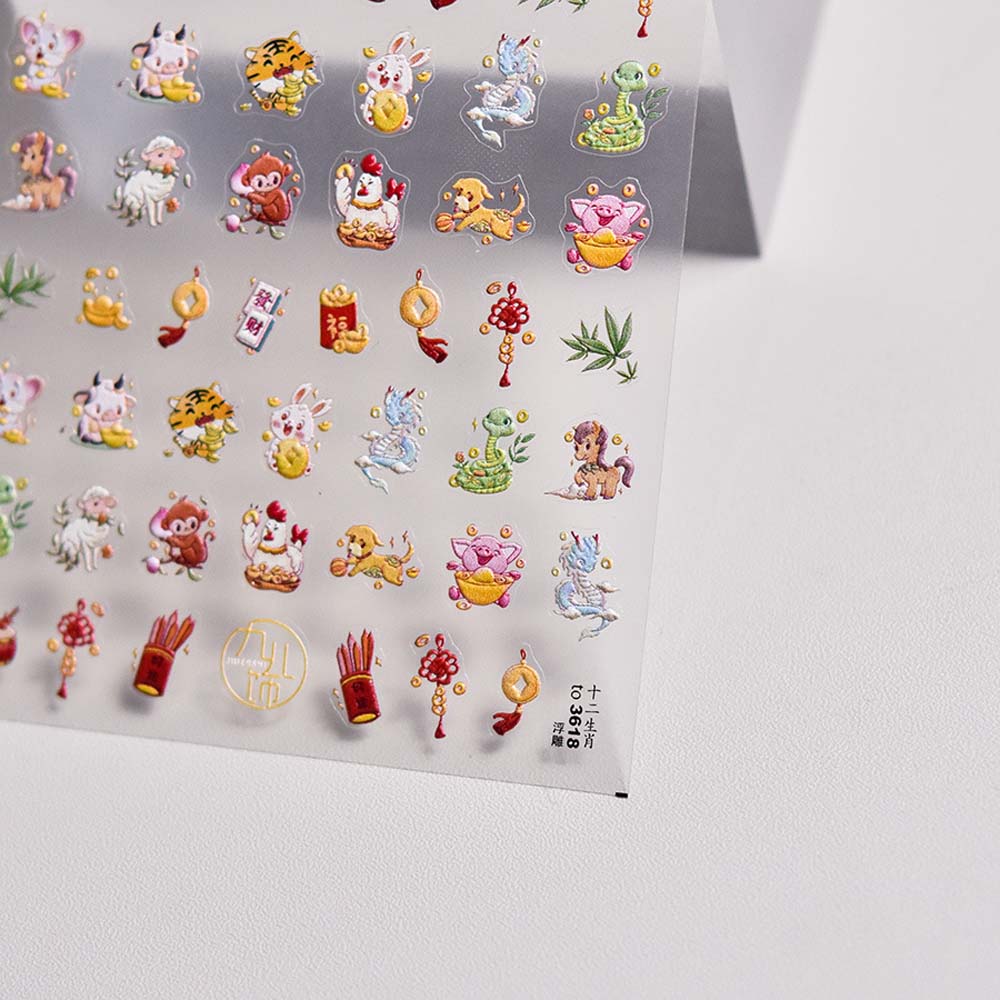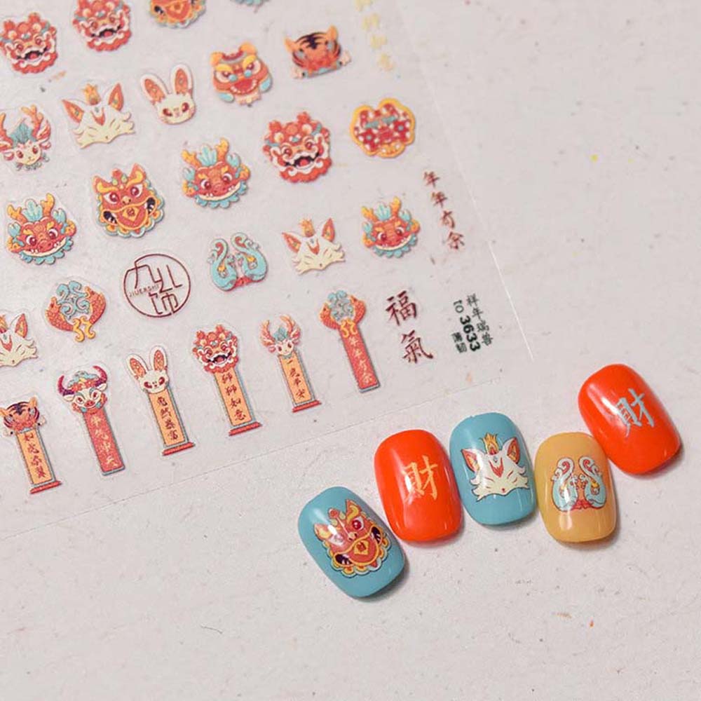Китайский иероглиф Наклейки для ногтей на китайский Новый год Животные зодиака Китайские украшения для ногтей Леди
