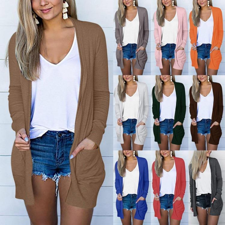 Женский однотонный топ, кардиган с длинными рукавами, легкая длинная куртка