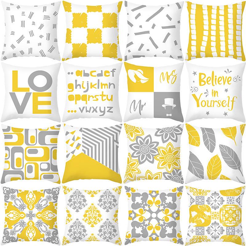 Скандинавская простая персиковая кожа бархатная наволочка желтая и серая геометрический узор офисная диванная наволочка