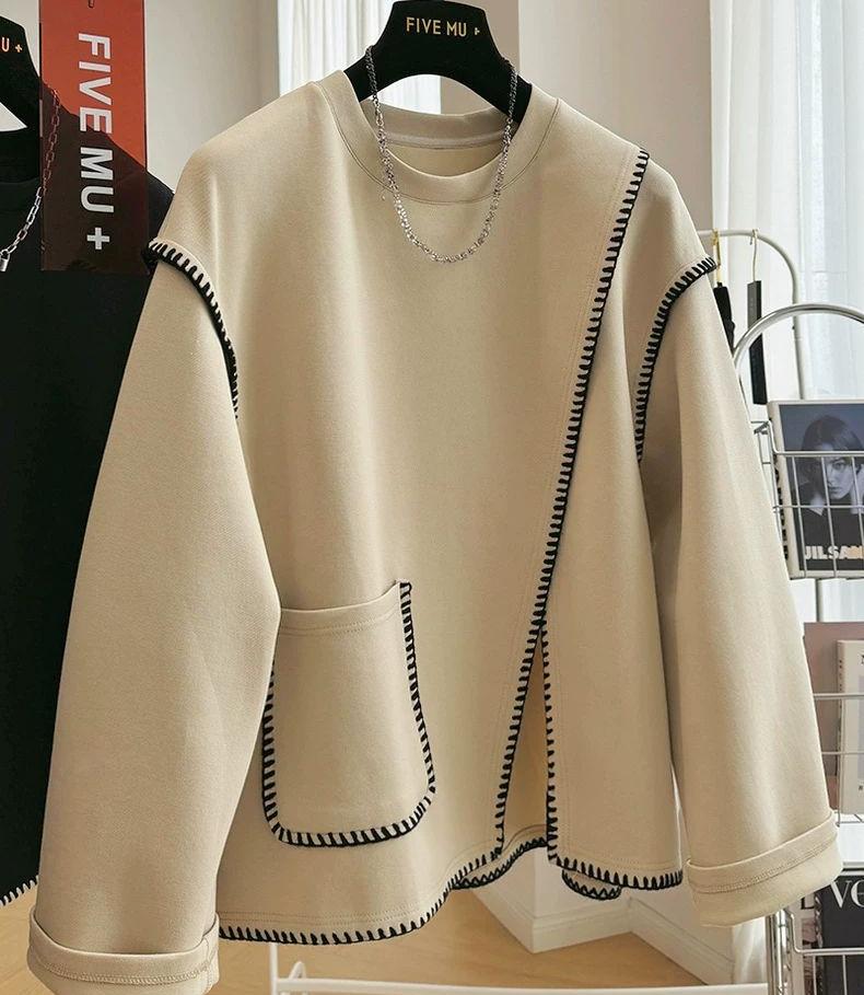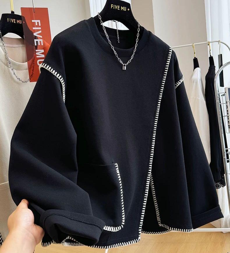 Женский свитшот большого размера с круглым вырезом и длинными рукавами, осенний свободный повседневный худи, оверсайз топы, винтажный пуловер с асимметричным низом