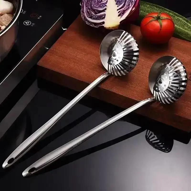 Кухонная посуда Двухфункциональная суповая ложка с длинной ручкой Нержавеющая сталь Суповой половник со съемным фильтром Дуршлаг Посуда Черпак