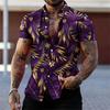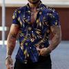 Мужские черно-золотые рубашки с цветочным принтом Летняя рубашка с лацканами с растительным принтом Гавайский стиль пляжная с коротким рукавом на пуговицах