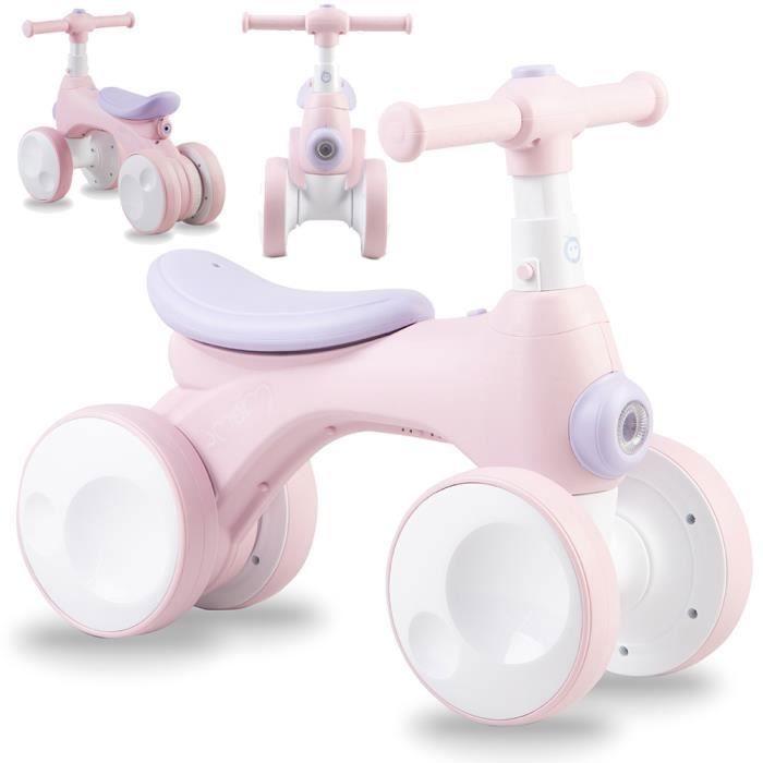 Momi tobis – draisienne bébé sans pédales – bulles, lumière led, klaxon – guidon réglable – rose