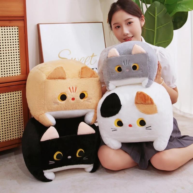 Милая квадратная плюшевая игрушка в виде кошки, пушистая черная подушка в виде котенка, плюшевая кукла в виде животного, кавайное украшение для дома, подарок на день рождения